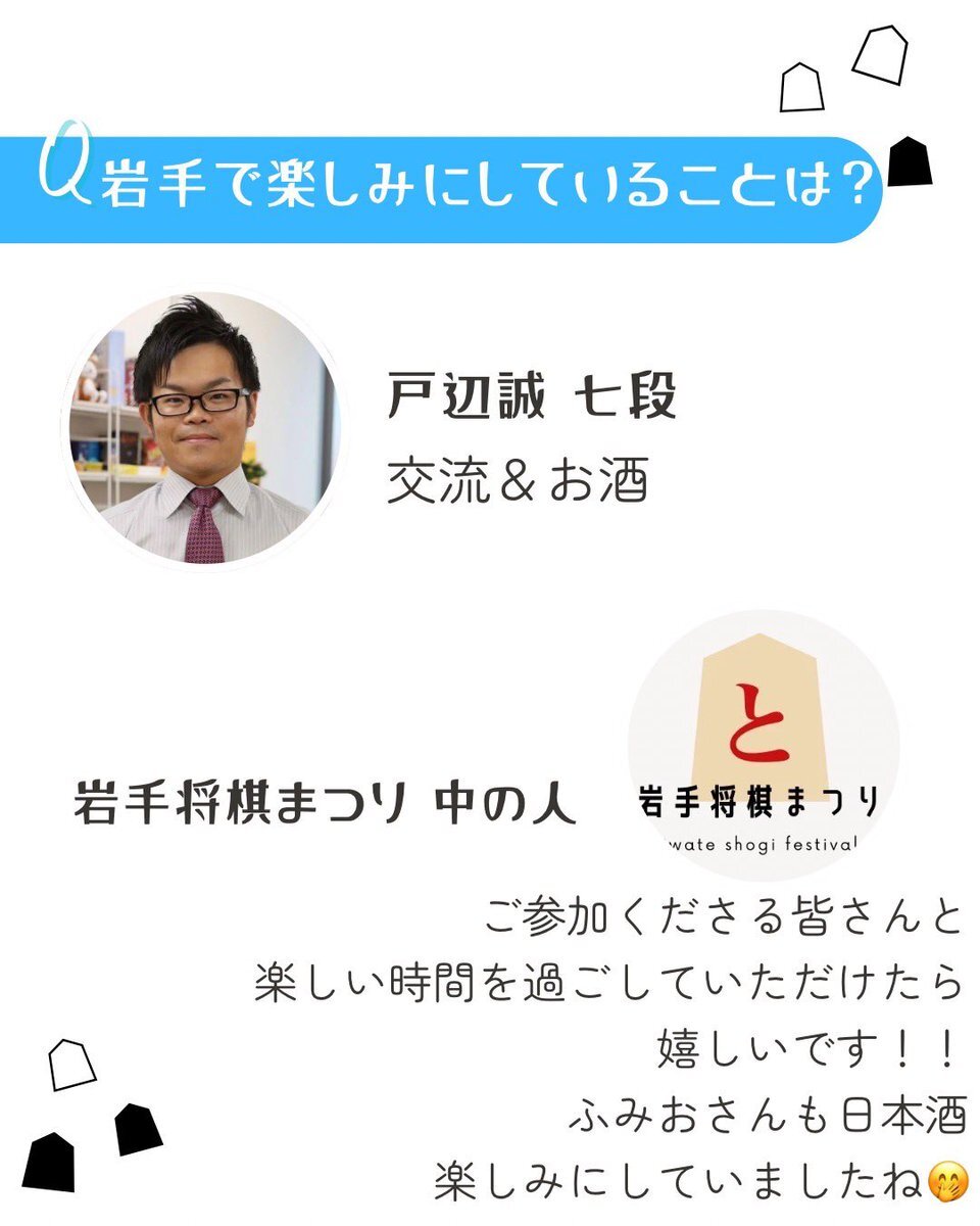ゲストの先生方にお答えいただく 一問一答🐯 本日は... 戸辺誠 七段です🍶 岩手将棋まつり まだまだお申込受付中❗️ お申込は下記から forms.gle/TXDSRFLk44L1gU… #戸辺誠七段 #山本博志五段 #小山怜央四段 #さわやかだいちゅきふみおさん #将棋 pic.x.com/ewF3DYGvBW