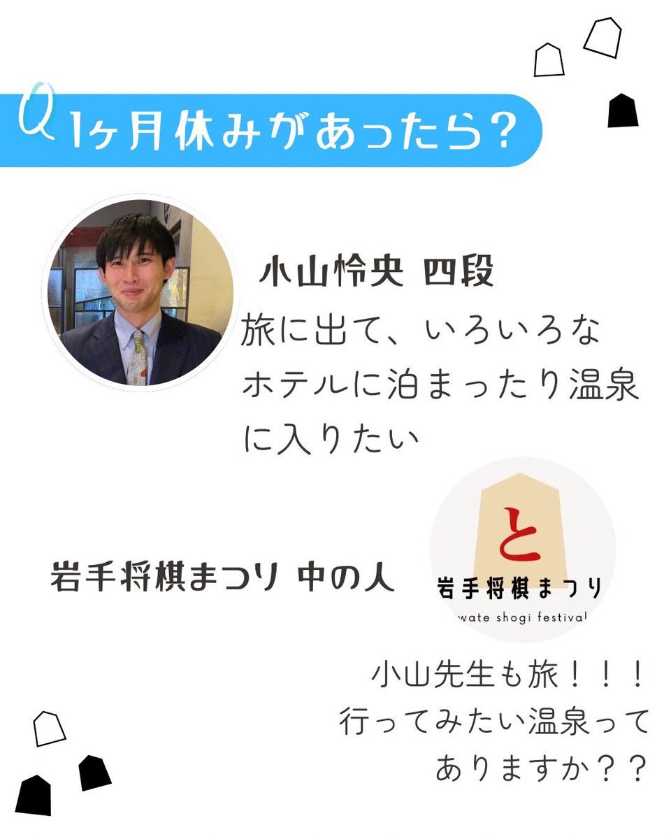 ゲストの先生方にお答えいただく 一問一答🐯 本日は... 小山怜央 四段です🥛 岩手将棋まつりまで あと23日✨ お申込はこちらから⬇️ forms.gle/sS5fbfNZPsuPzT… #戸辺誠七段 #山本博志五段 #小山怜央四段 #さわやかだいちゅきふみおさん #将棋 pic.x.com/rpxe55YIbi