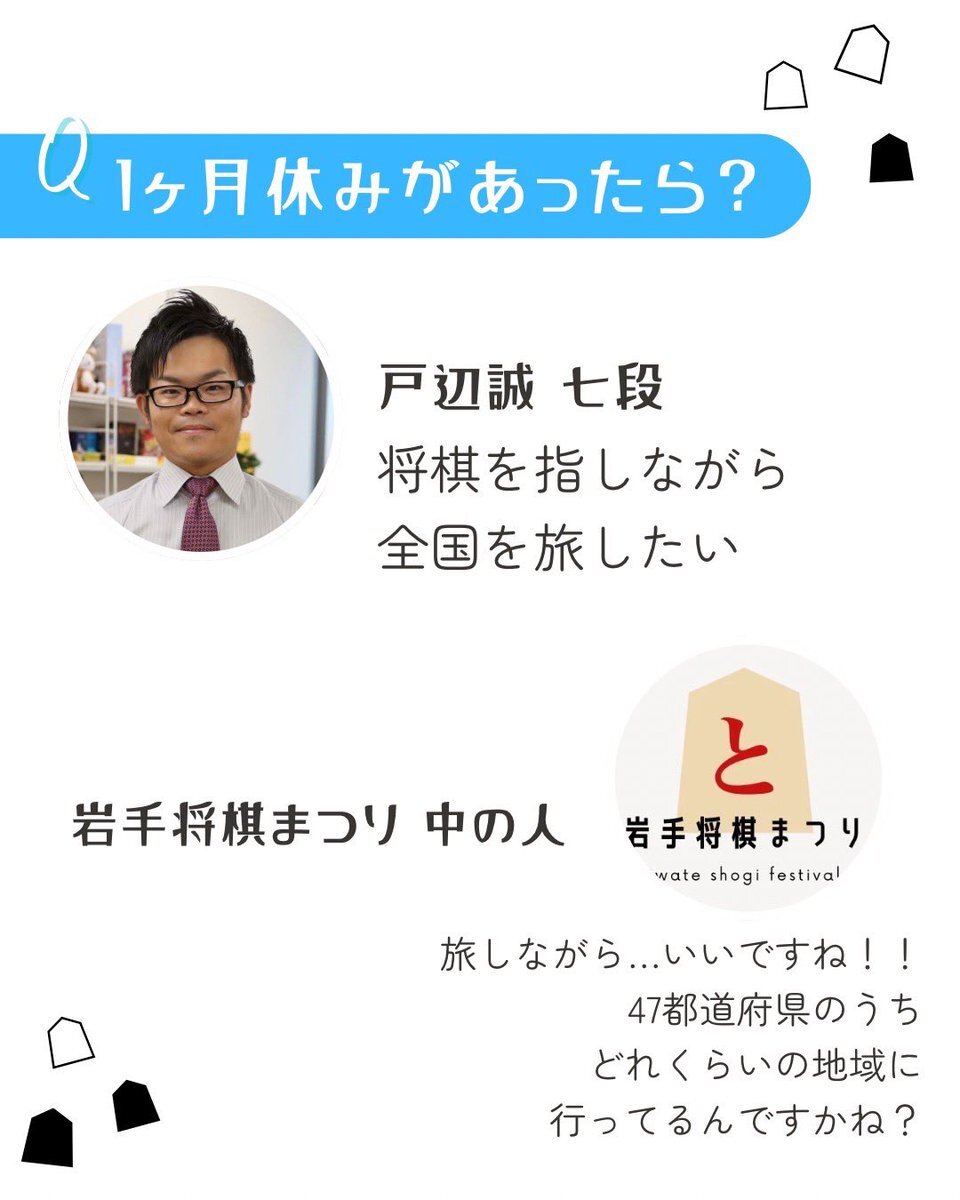 ゲストの先生方にお答えいただく 一問一答🐯 本日は... 戸辺誠 七段です✈️ 岩手将棋まつりまで あと32日✨ #戸辺誠七段 #山本博志五段 #小山怜央四段 #さわやかだいちゅきふみおさん #将棋 pic.x.com/SrFbknoP55