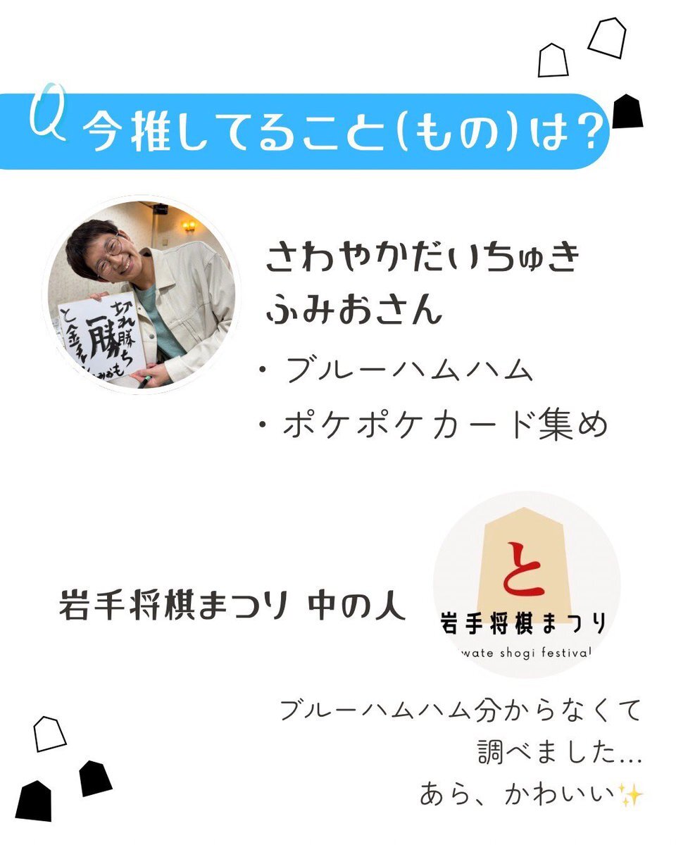ゲストの先生方にお答えいただく 一問一答🐯 今回のクエスチョンは 「今、推していること(もの)は?🥰」 本日は... さわやかだいちゅき ふみおさんです🍔 岩手将棋まつりまで あと29日✨ #戸辺誠七段 #山本博志五段 #小山怜央四段 #さわやかだいちゅきふみおさん #将棋 pic.x.com/rnYFUjspzT