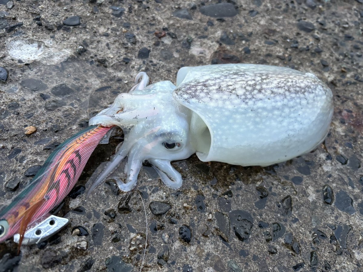 房総エギング!!🦑 今日の朝は穏やかな予報でしたが前日からの濁りが残っててかなり厳しかったけど、どこかのあの人に似た悪気な目をした方が1杯だけ釣れました☝️🤣 #カリスタ76ML #ヤマガブランクス #24ツインパワー2500shg #シマノ #エギ王 #ヤマシタ #房総エギング #エギングpic.x.com/IOUChOhKy1