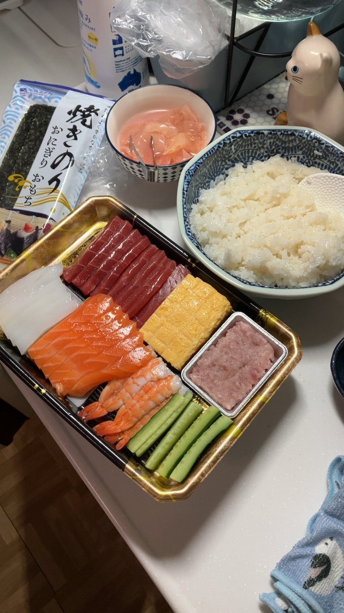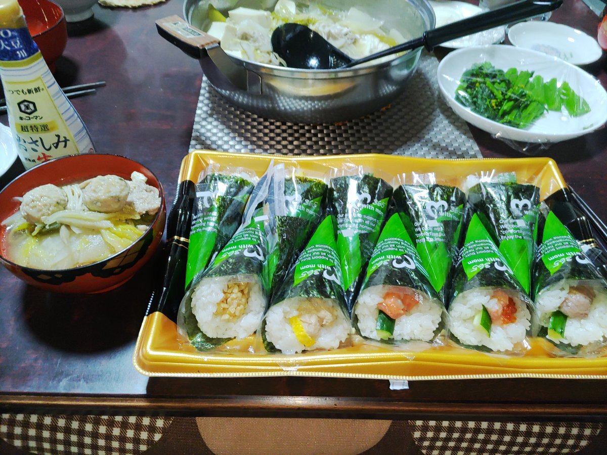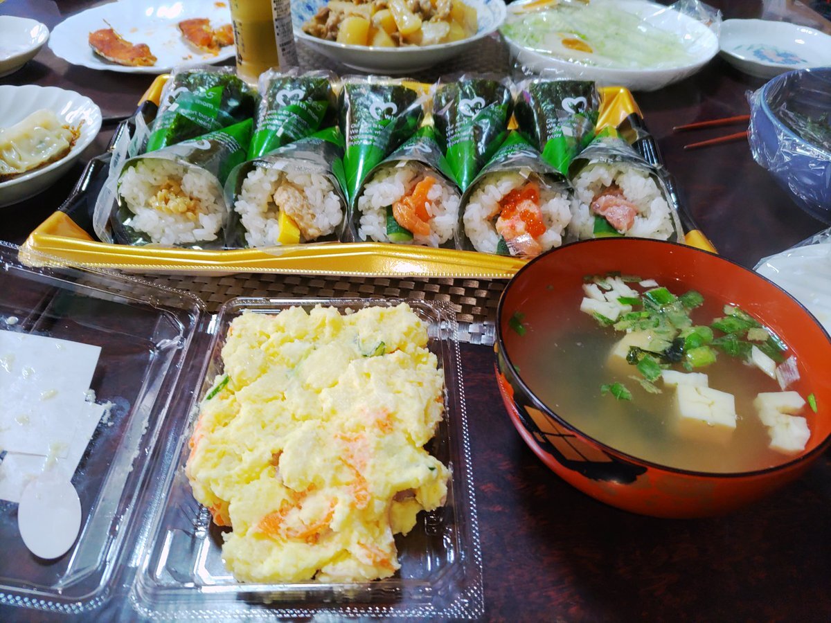 寿司の日ですが、おにぎり継続中なので26日目は酢飯で梅にぎり。手巻きはアレルギーに配慮した具も用意。お味噌汁はたっぷり7種の野菜入りで。みんなで楽しめる具材にできるっていい時代。 #OnigiriAction #OnigiriAction2025 #手巻き寿司 #寿司の日 pic.x.com/UJohcEdalZ