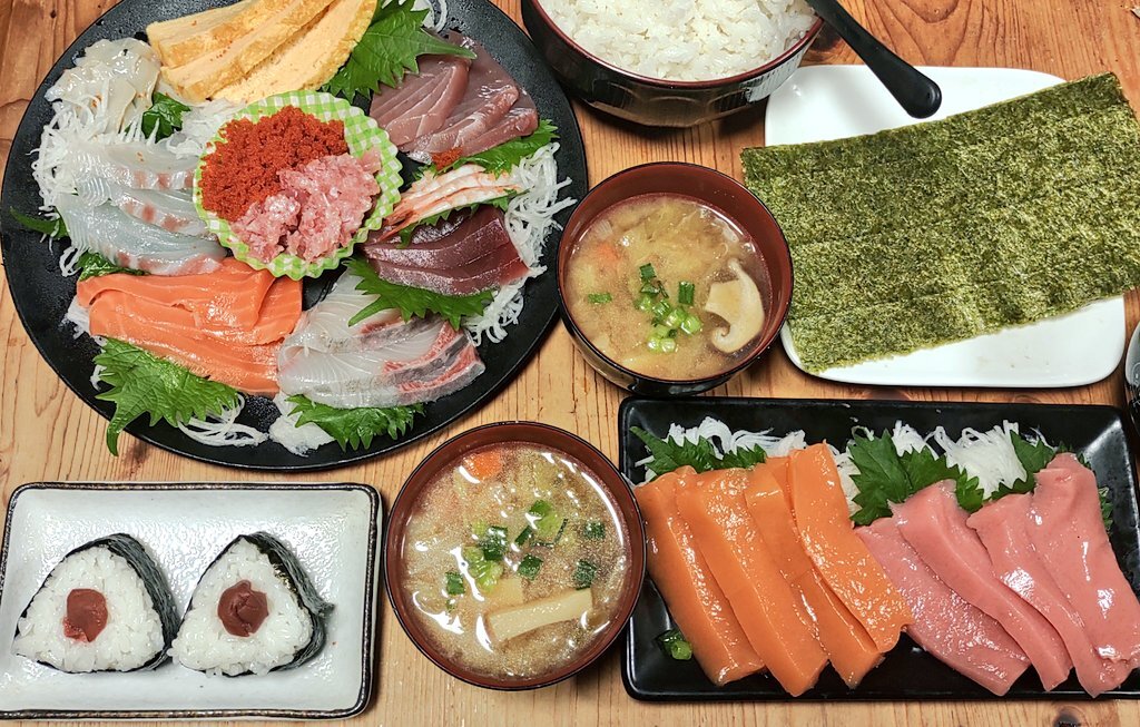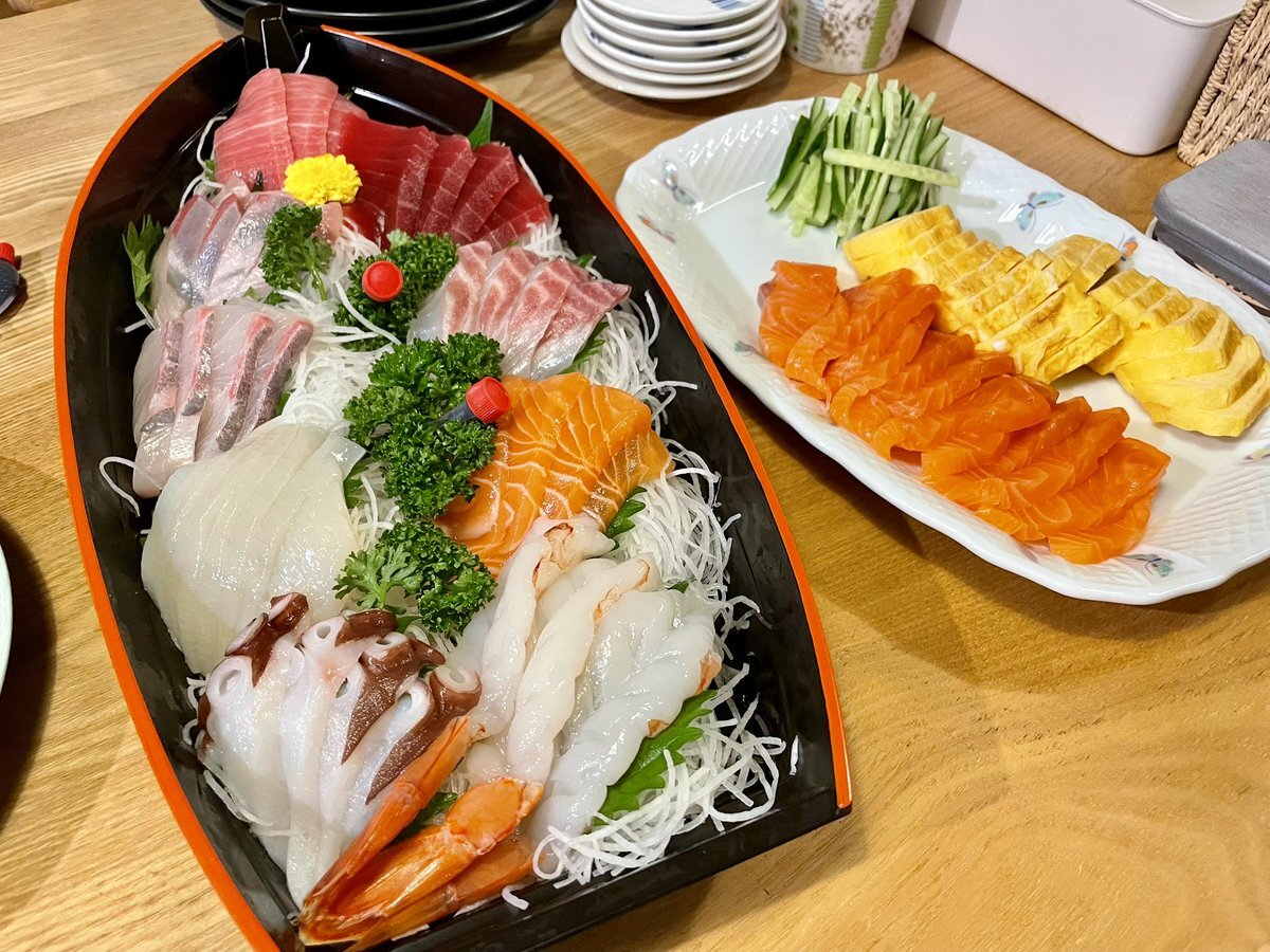 今日の晩御飯は旦那の鼻の鼻腔内手術成功祝いをしました。でもまだ鼻血が出るし、鼻血と鼻水が喉に流れるからご飯美味しく食べれないと途中で残したのでまた明日食べます。 #手巻き寿司 #旦那慢性副鼻腔炎と花粉症両方発症してたらしい。 pic.x.com/09vSOJYC4N