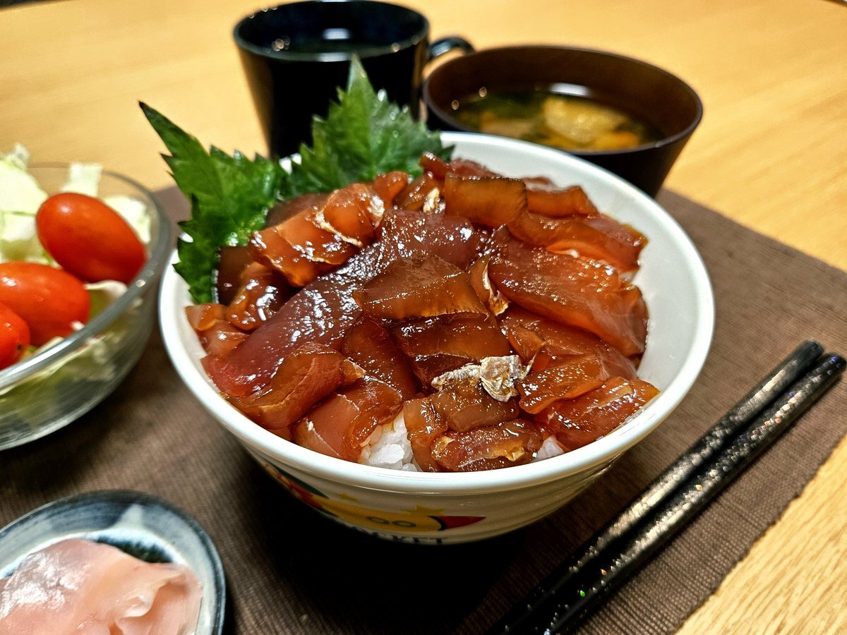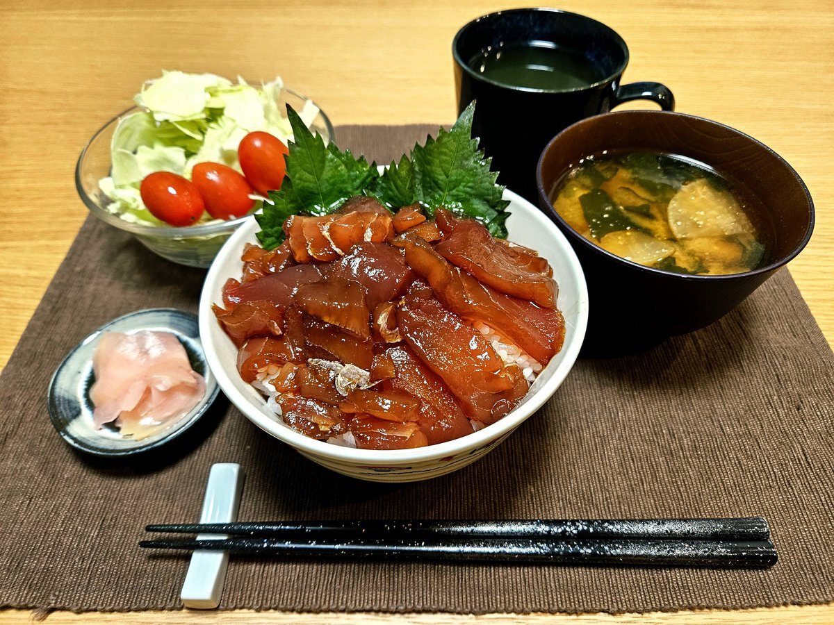 映えないであろう今日の独り暮らし飯🍚 『漬けまぐろ丼セット』 漬けまぐろ丼 大根とわかめのお味噌汁 生姜の甘酢漬け 緑茶 いただきます。 #手料理日記 #男飯 #漬けまぐろ丼 #どんぶり pic.x.com/RZ6RyaHdTx