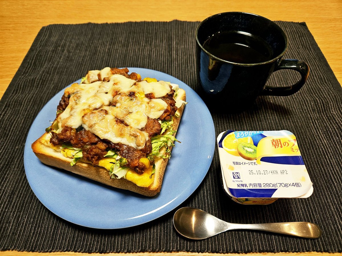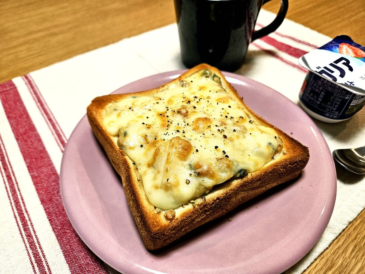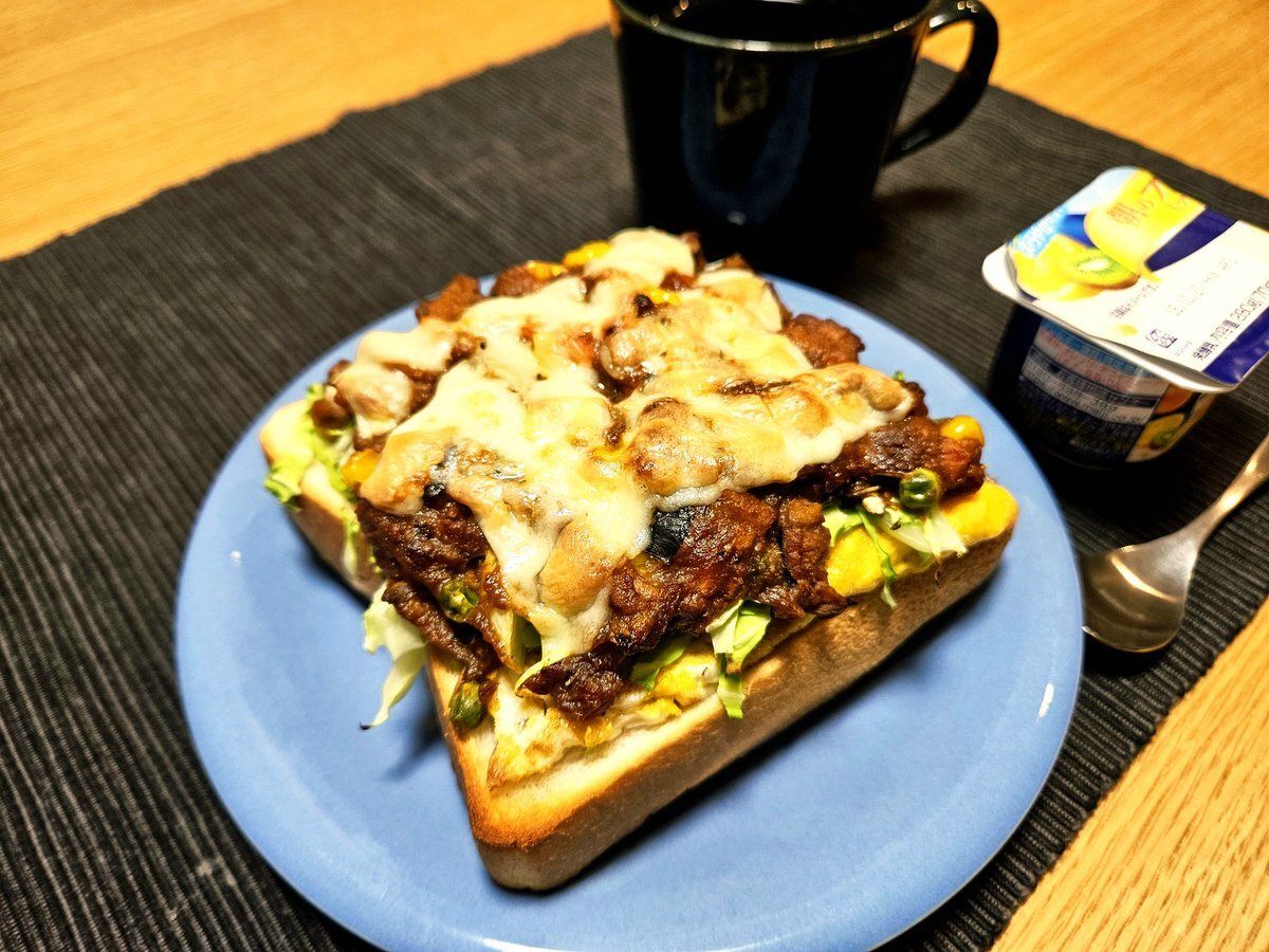 映えないであろう今日の仕事終わりの独り暮らしお夜食🍚 『さば缶のチーズキーマカレートーストと紅茶(セイロン)セット』 いただきます。 #手料理 #手料理日記 #男飯 pic.x.com/jyYyvJWSAZ