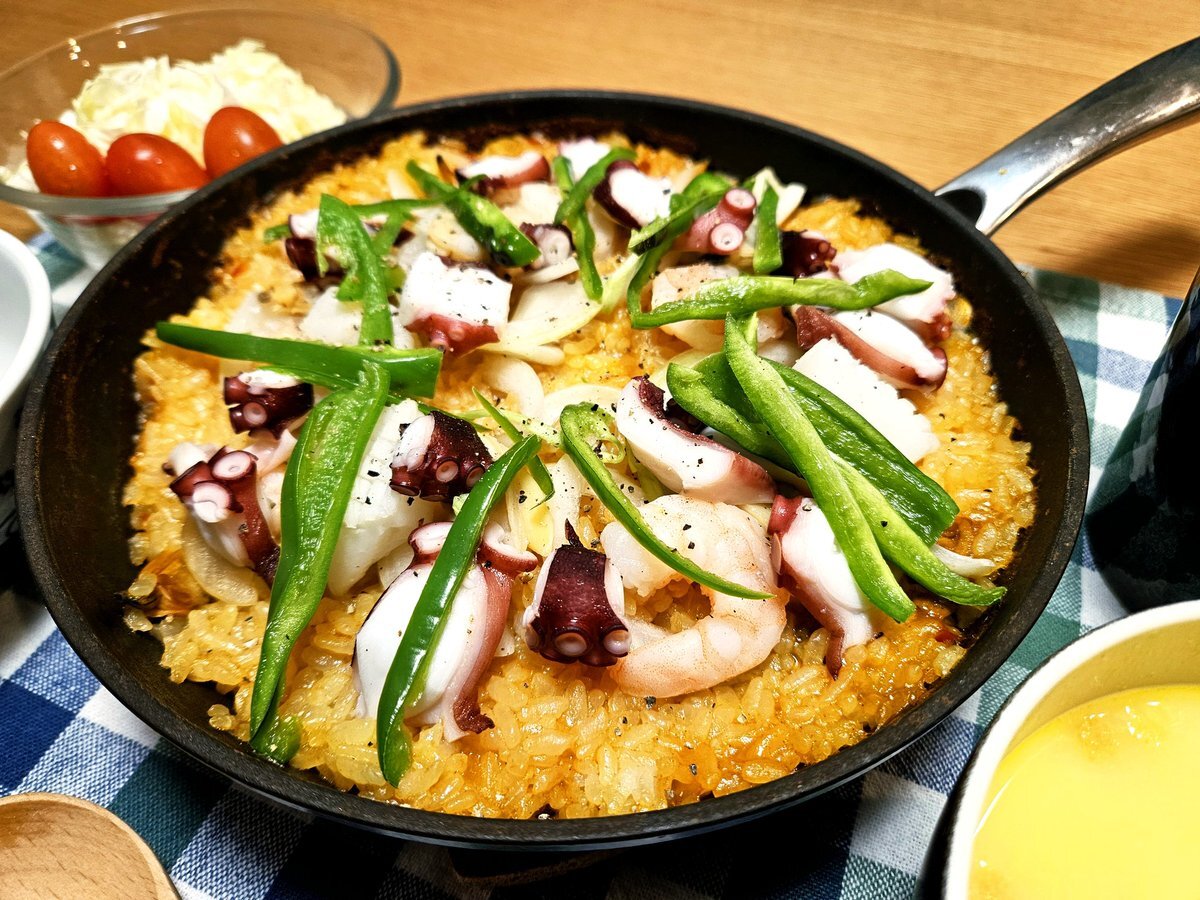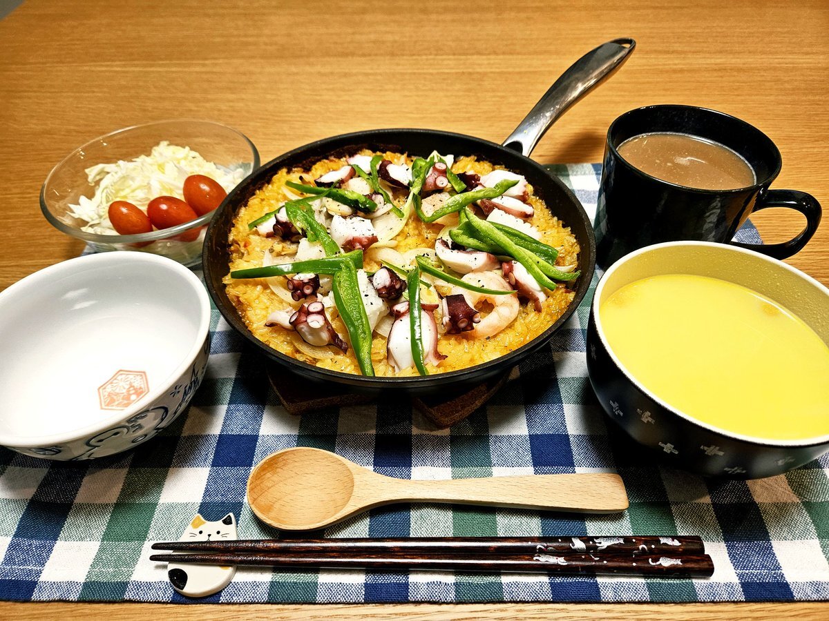 映えないであろう今日の独り暮らし飯🍚 『たこ🐙のシーフードパエリア🥘セット』 いただきます。 #手料理 #手料理日記 #男飯 pic.x.com/th9lXw9ZMu