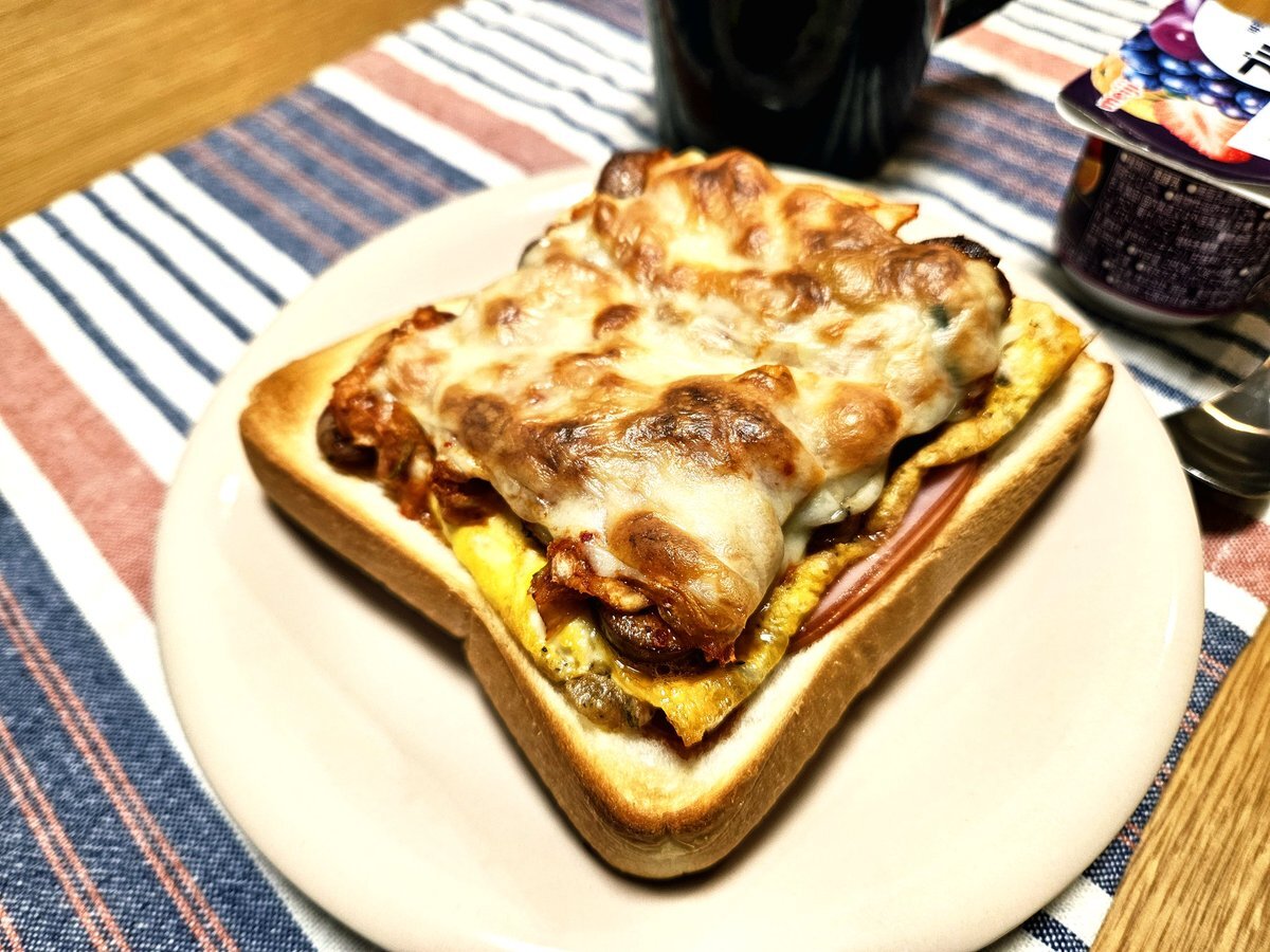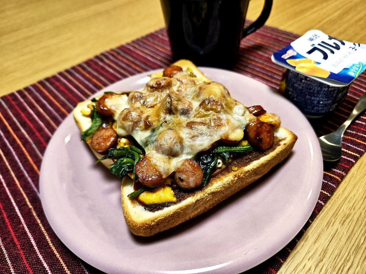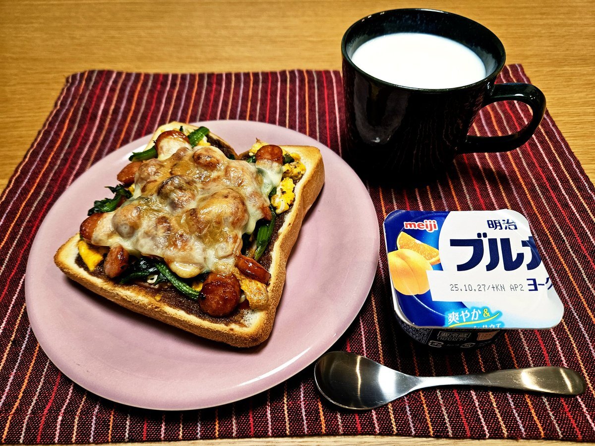 映えないであろう今日の仕事終わりの独り暮らしお夜食🍚 『ほうれん草とソーセージと卵そぼろの照り焼きトーストとホットミルク』 いただきます。 #料理 #手料理日記 #男飯 pic.x.com/Evz5et6gw9