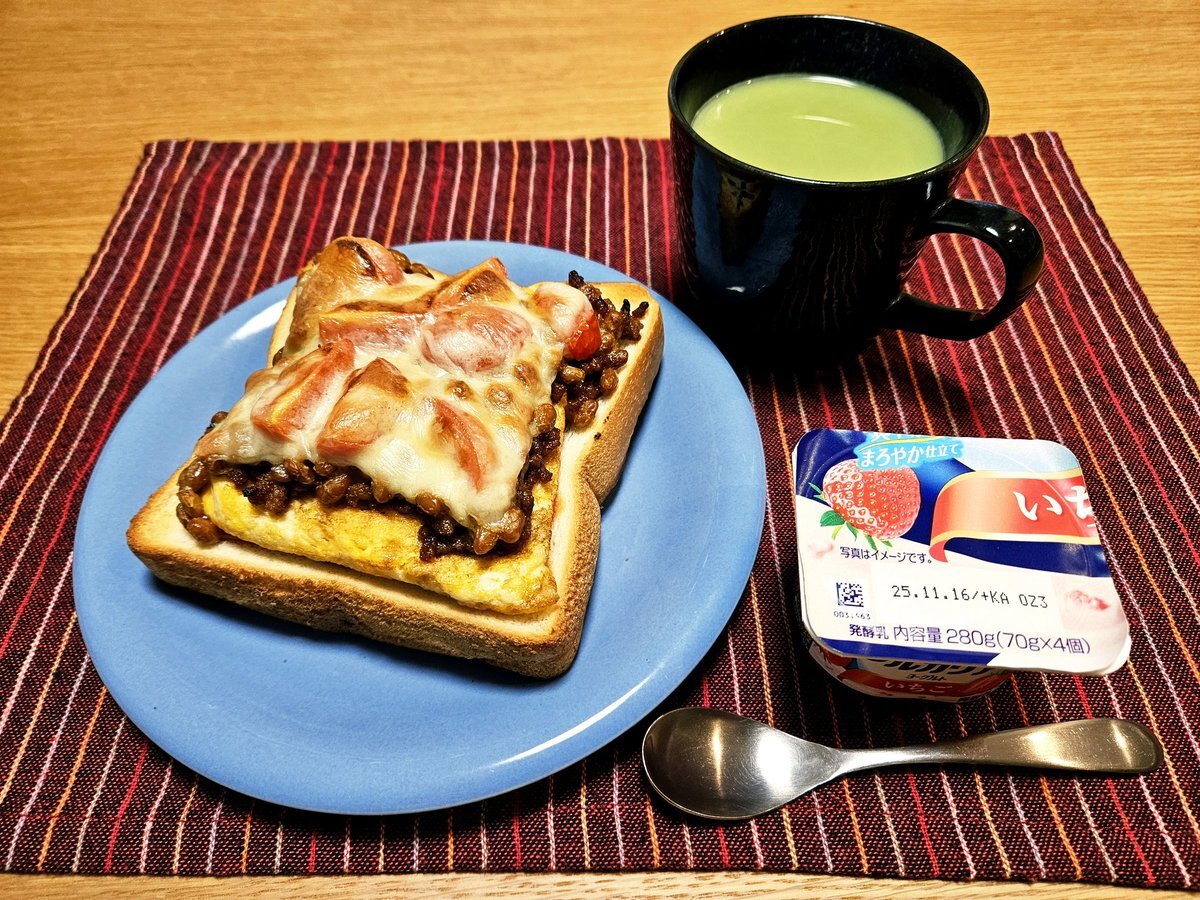 映えないであろう今日の仕事終わりの独り暮らしお夜食🍚 『納豆とひき肉のチーズトマト🍅玉子トーストと宇治抹茶ラテセット』 いただきます。 #料理 #手料理日記 #男飯 pic.x.com/nxDNBYmi9p