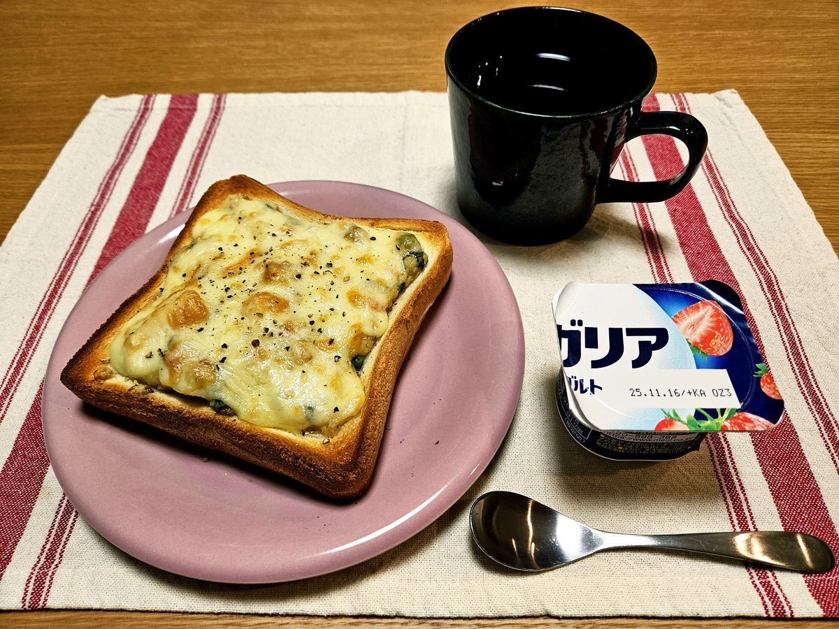 映えないであろう今日の仕事終わりの独り暮らしお夜食🍚 『チーズたっぷり ほうれん草とシーフードのグラタン食パン🍞と紅茶(ダージリン)セット』 いただきます。 #手料理 #手料理日記 #男飯 pic.x.com/2nMBSJn0Vq
