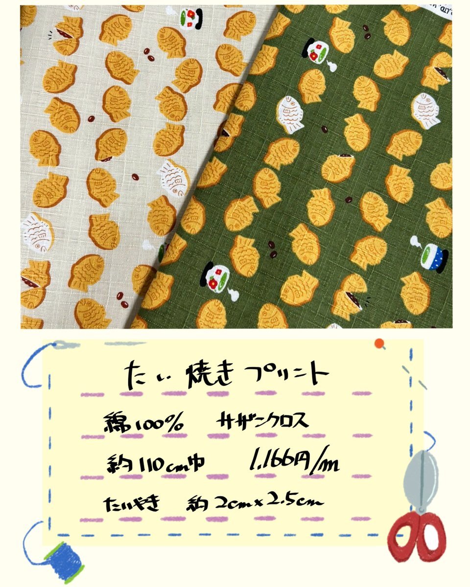 (ºωº э)З生地紹介 可愛くておいしそうなたい焼き達がいっぱいの和柄生地です♪ サザンクロスで独特の手触り✋ 私の推し曰く、たい焼きは深海魚🐟 🚚全国配送OK🚚 50cm単位でカット♪ 気軽にお問い合わせ下さい✨ morio-hobby.com #ハンドメイド #手芸 #手芸の店もりお本店 #もりお桜木店 pic.x.com/LupL3lLRya