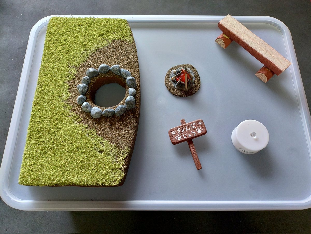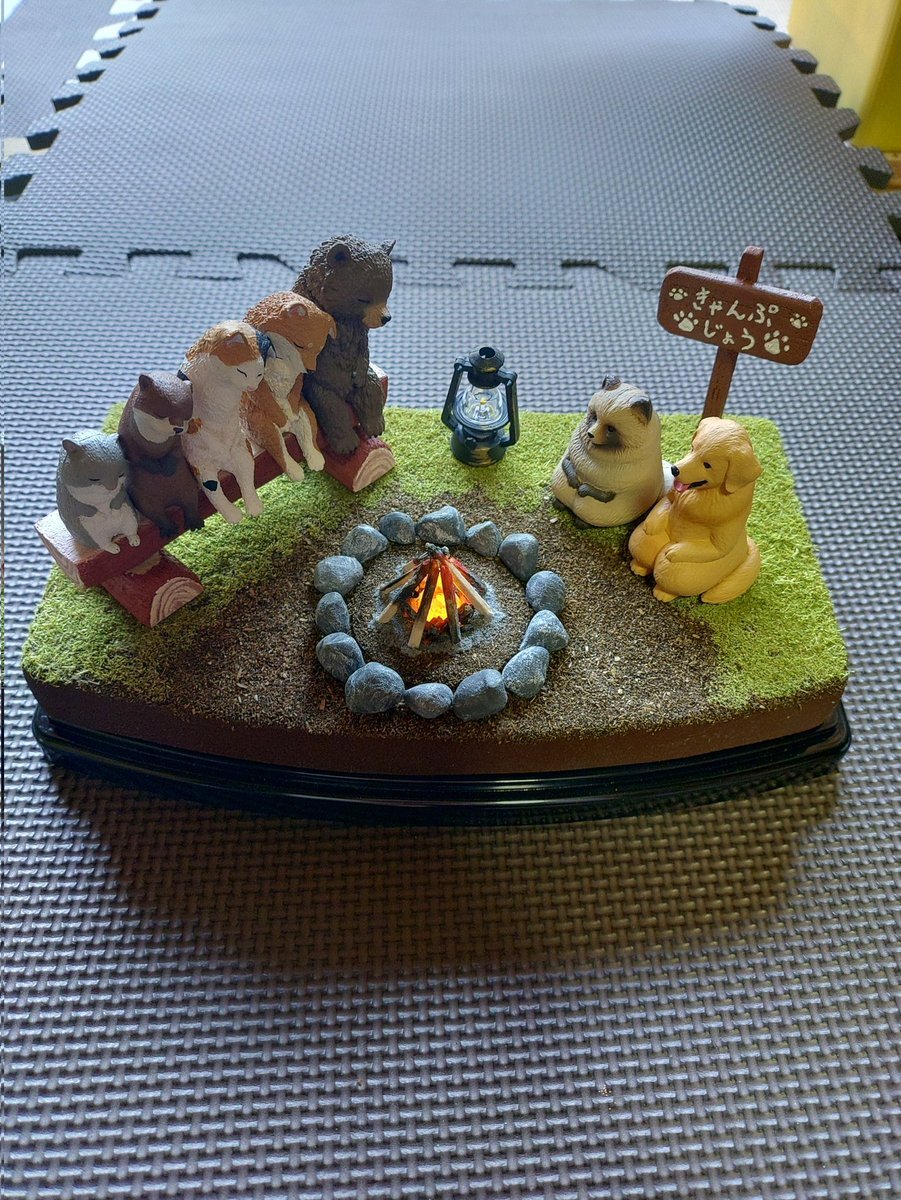ジオラマ工作 キャンプ場の動物達と焚き火のジオラマ (ガチャガチャのフィギュア使用) #粘土細工 #クレイドール #レジンアート #ジオラマ #ものづくり #ハンドメイド #Handmade #手芸好きさんと繋がりたい #犬好きさんと繋がりたい #猫好きさんと繋がりたい pic.x.com/btT2vlme0w