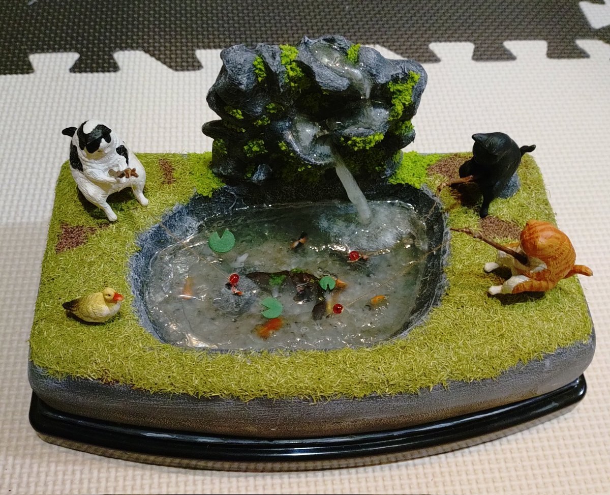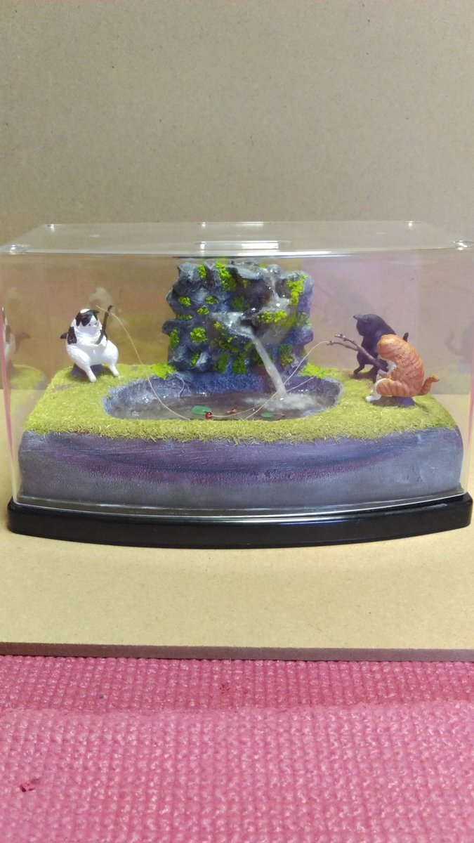 ジオラマ工作 釣り猫とカモと滝の流れる池のジオラマ (ガチャガチャの釣り日和のフィギュア使用) #粘土細工 #クレイドール #レジンアート #ジオラマ #ものづくり #ハンドメイド #Handmade #手芸好きさんと繋がりたい #犬好きさんと繋がりたい #猫好きさんと繋がりたい pic.x.com/oKmRKb0H2M