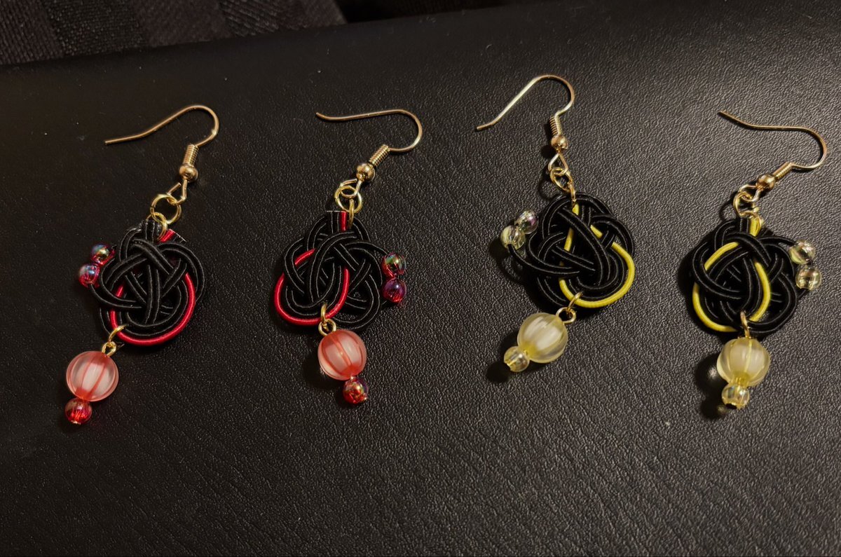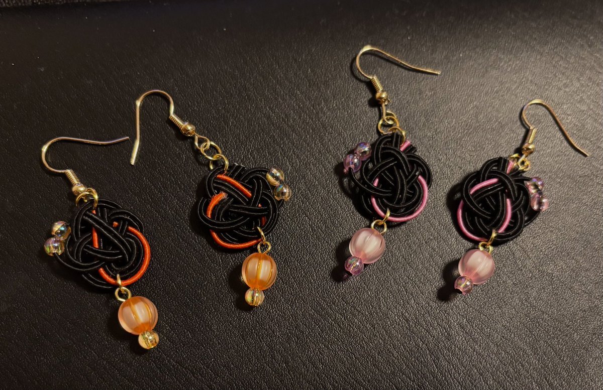 【ハンドメイド 水引】 小梅ちゃん 白ベースで創ってた小梅ちゃん、今回は黒ベースでシリーズ創ってみました😊 暖色系② #よさこい手芸部 #手芸好きさんと繋がりたい #よさこいアクセサリー #水引アクセサリー 🏵️イベント出店🏵️ YOSAKOI祭りin加美 来月11月2日 日曜日 pic.x.com/FxN8c9n0v9