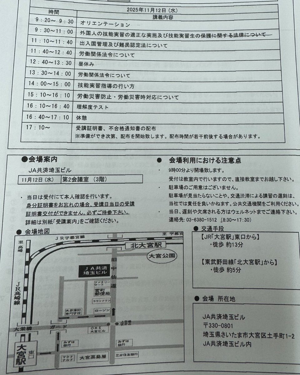 先日外国人実習生を受け入れるため 技能実習責任者講習を受講してきました📚 このスケジュール厳しかったです。🥲 外黒人実習生受け入れ準備が着々とすすんでいます✨ #技能実習生 pic.x.com/5POg4SAdOt