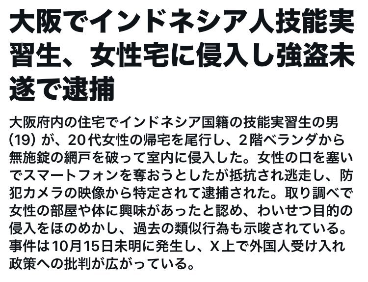 これは本当に止めたいです‼️一人でも多くの方の目に止まりますように❗️もう移民難民の受け入れは拒否‼️ #移民ストップ #移民政策反対 #就労支援反対 #技能実習生反対 x.com/ringo_5858/sta…