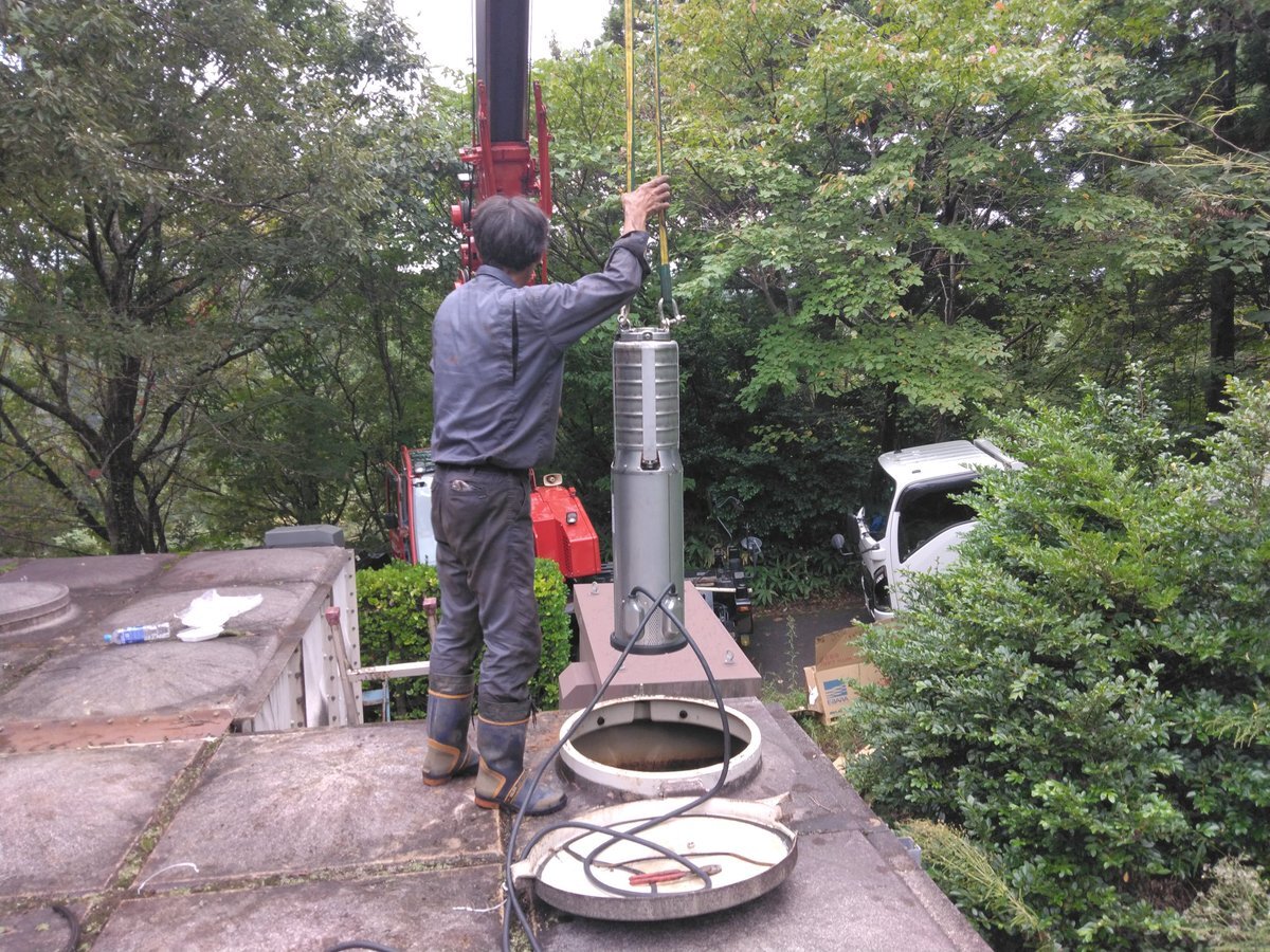 トンプソントーワ王丸です。 本日はポンプ設置工事を行っております。 受水槽の中に入れる写真ですが、クレーン操作してる方の繊細な技術力や高所でも怯まない強靱な精神力と2人の意思疎通が必要となります! #トンプソントーワ #ポンプ交換 #意思疎通 #技術力 #メンタル pic.x.com/bceA1qsQIl
