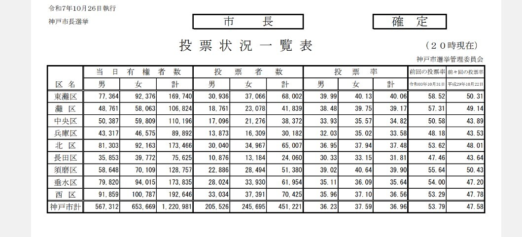 #神戸市長選挙 🗳️🤔七不思議? #投票率 36.96%で市長が決まる🤔 19時の中間報告で20%なのに、 最後の1時間で16%来たって、 信じられますか? pic.x.com/pL5wFVNRvz