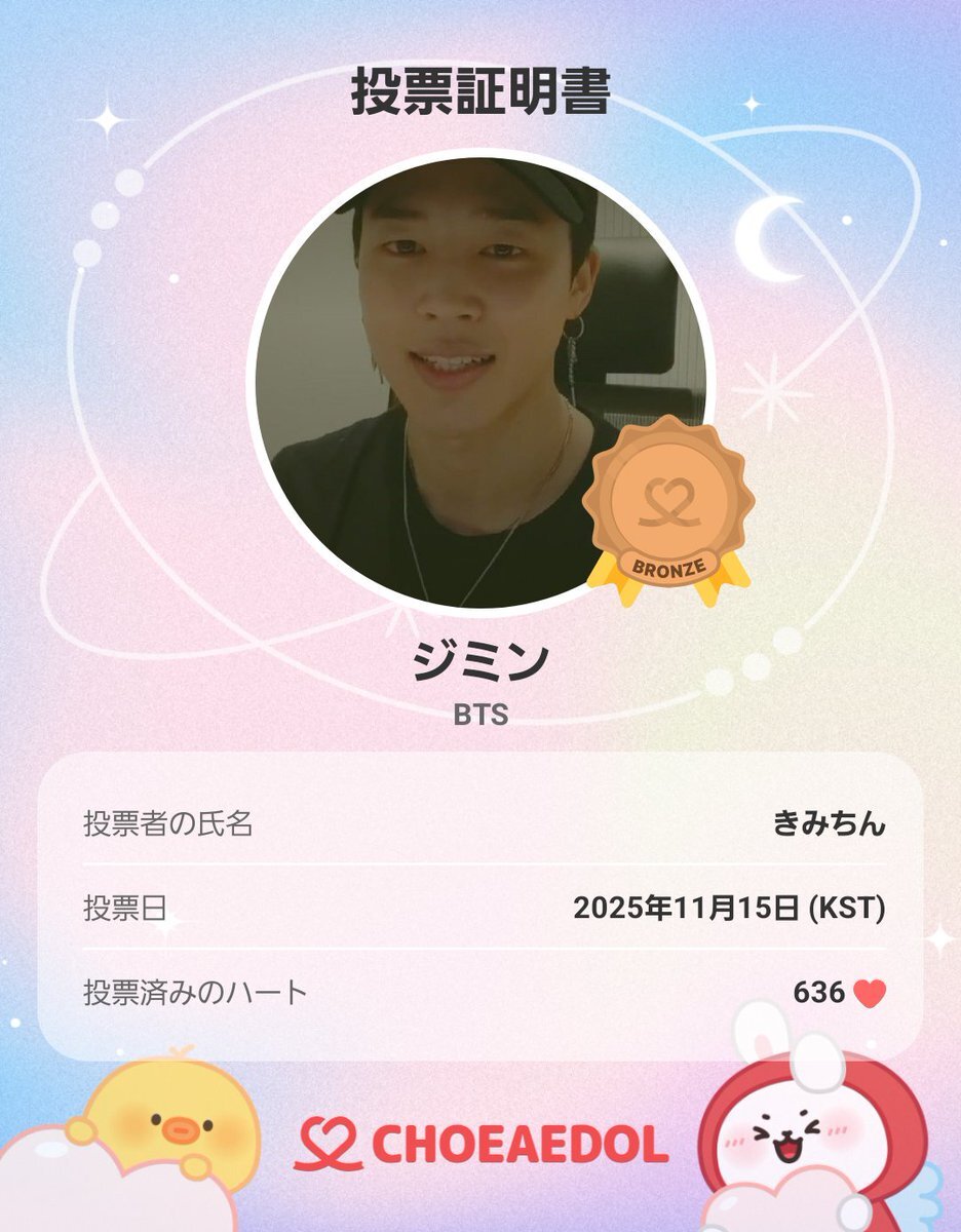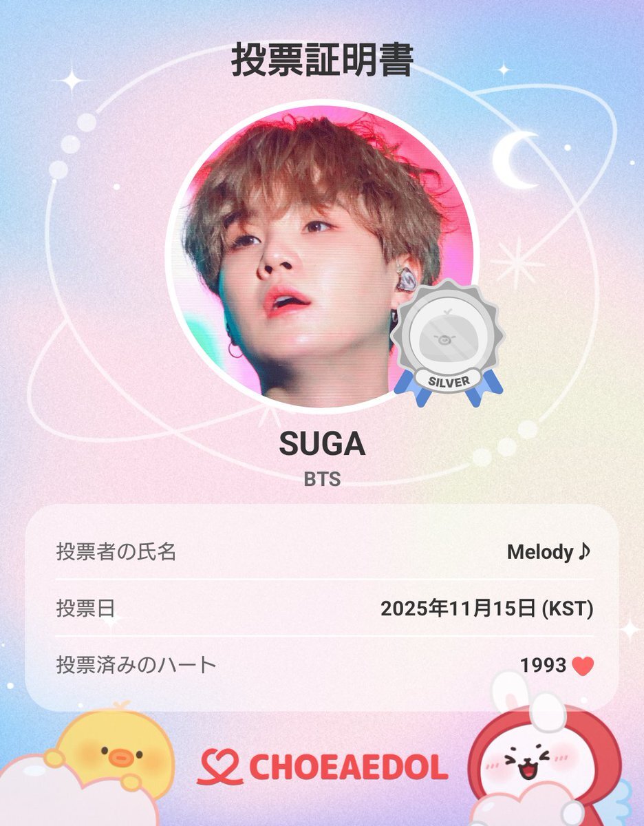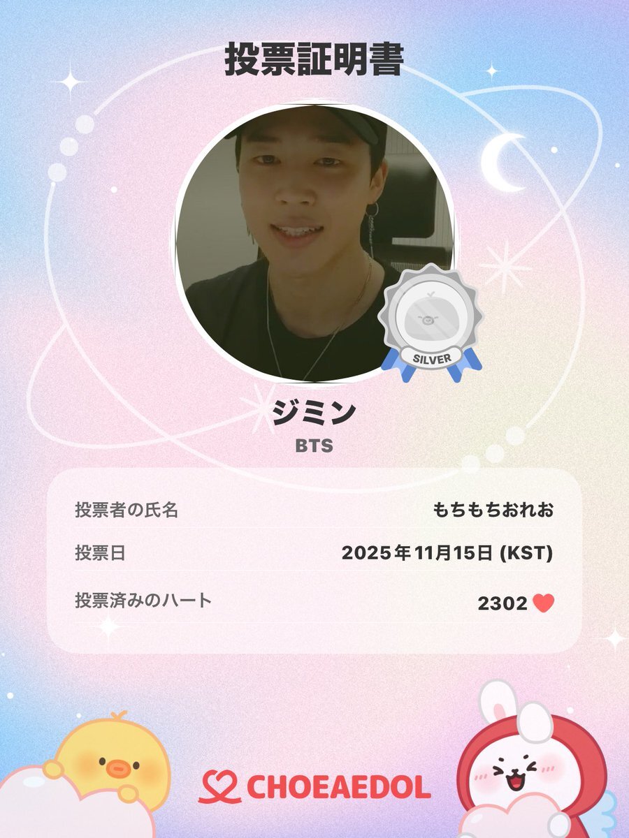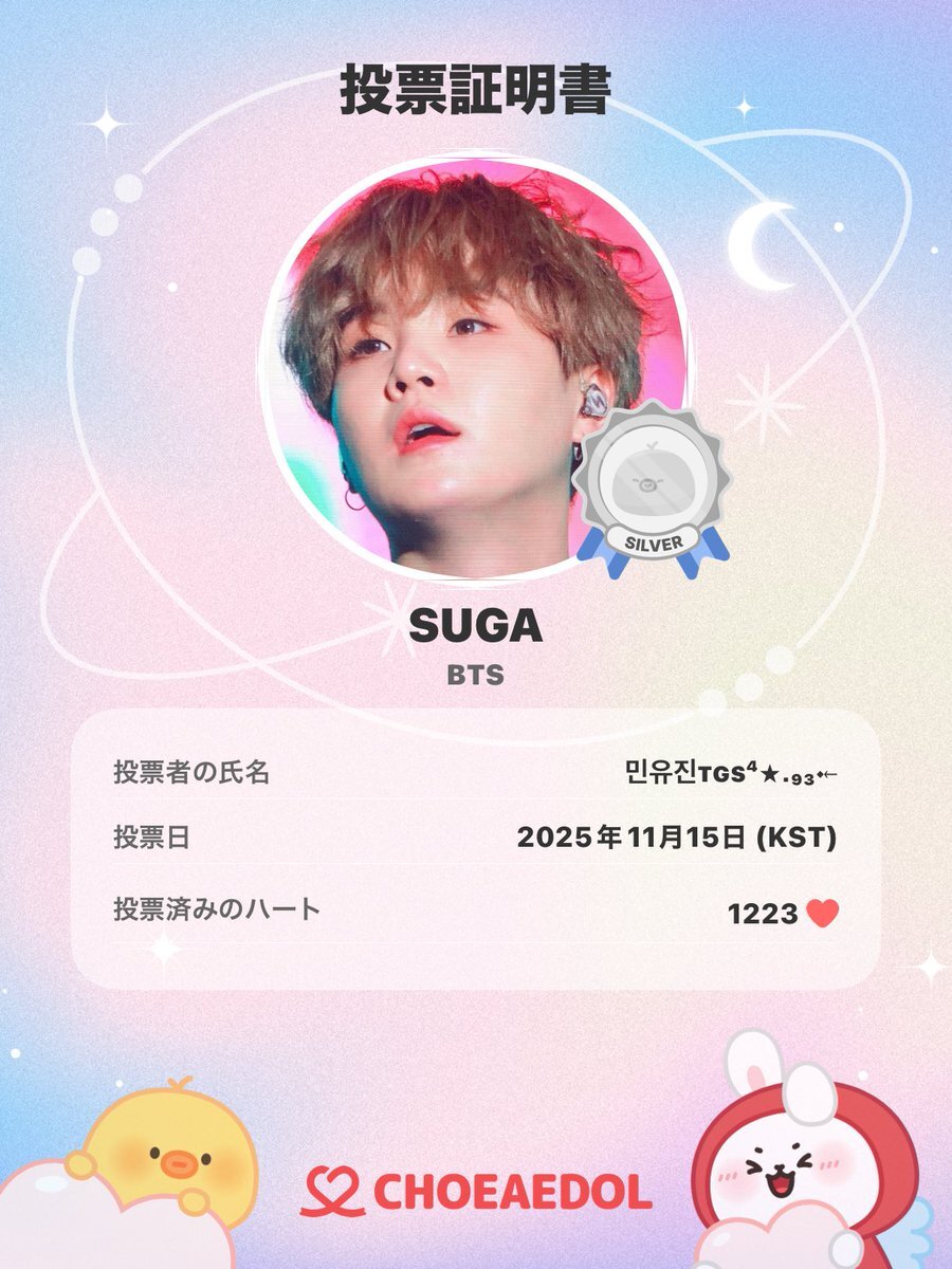今日も大好き更新🥹♥️✨ 本日投票完了しました💝 一緒に最愛ドルしましょう! #最愛ドル #V_BTS #投票証明 myloveidol.com/community/?loc… pic.x.com/an6GpRuxQf