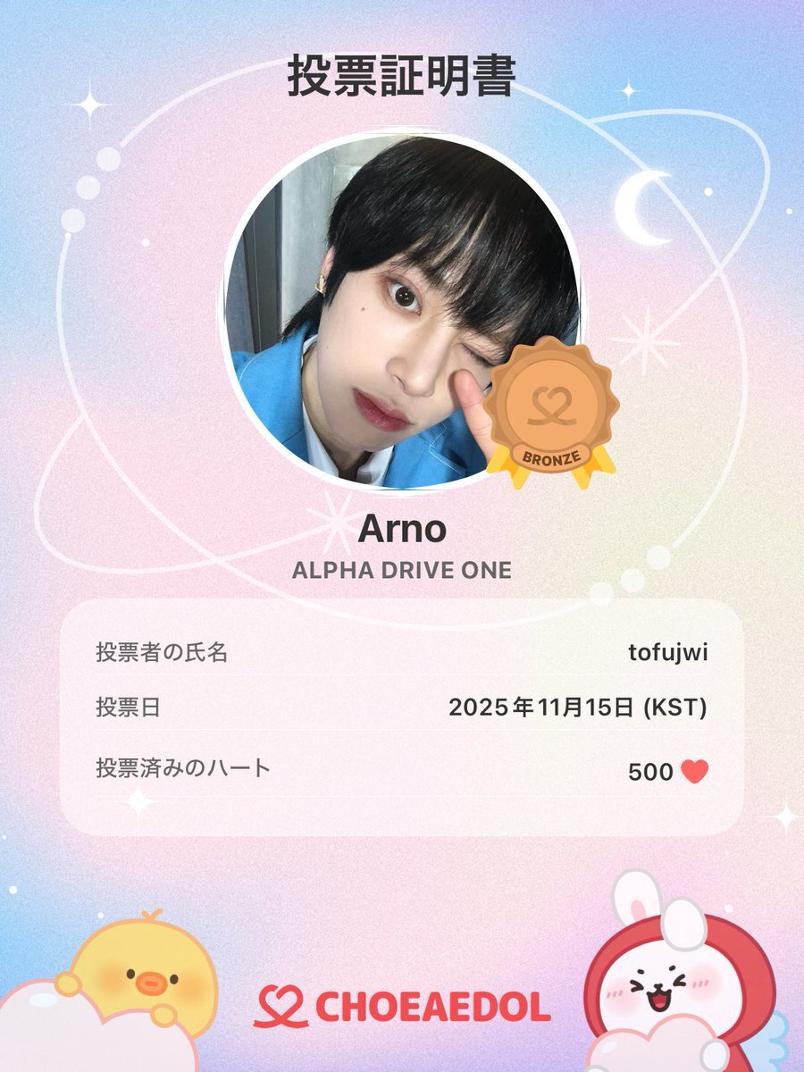 本日投票完了しました💝 一緒に最愛ドルしましょう! #最愛ドル #Arno_ALPHA DRIVE ONE #投票証明 myloveidol.com/community/?gro… pic.x.com/QEcqnvcOcB