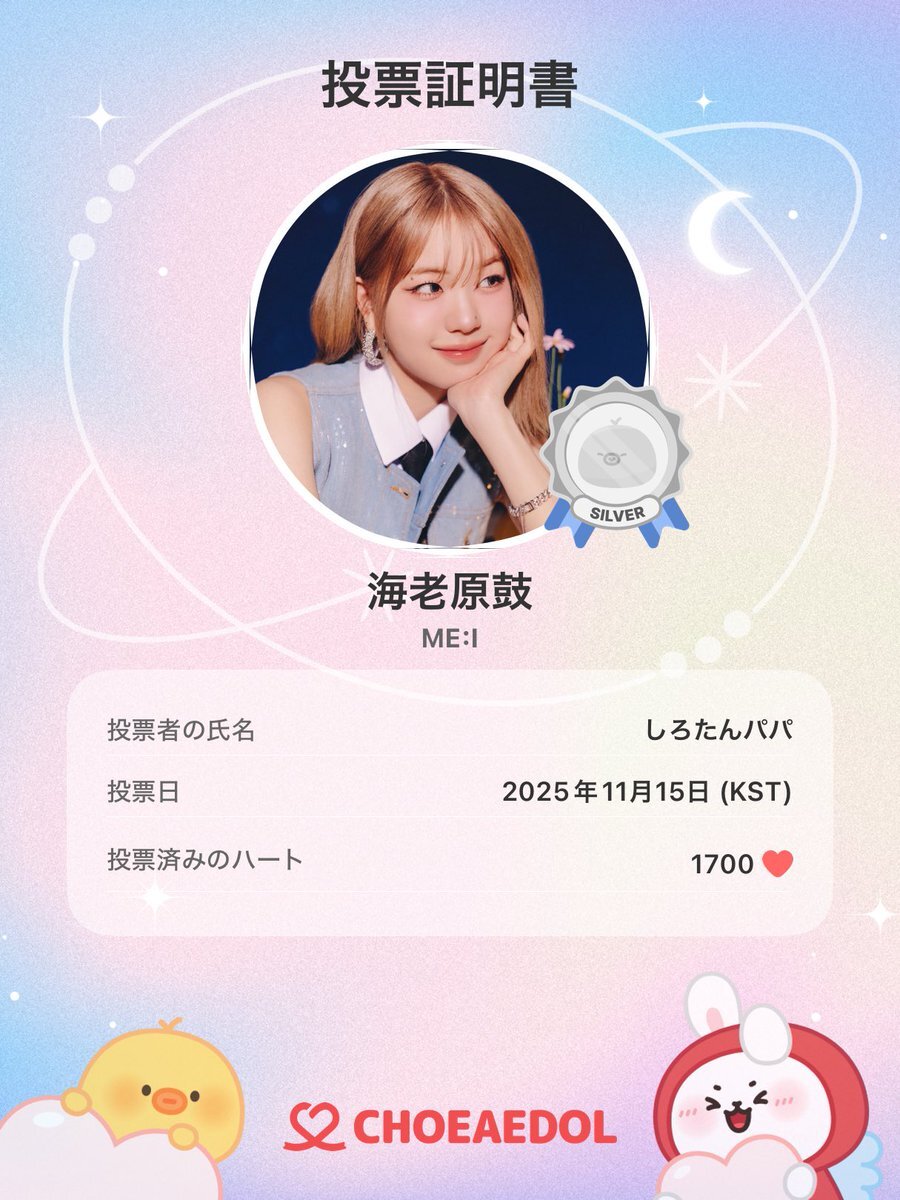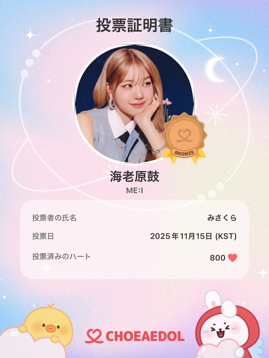 本日投票完了しました💝 一緒に最愛ドルしましょう! #最愛ドル #海老原鼓_ME:I #投票証明 myloveidol.com/community/?gro… pic.x.com/VGlAbL0cJO