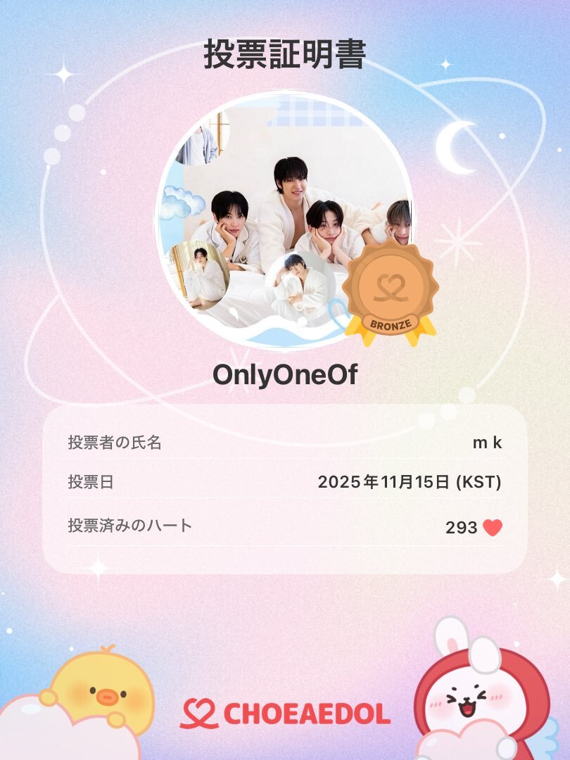 本日投票完了しました💝 一緒に最愛ドルしましょう! #最愛ドル #OnlyOneOf #投票証明 myloveidol.com/community/?loc… pic.x.com/DOyIEQvxGy