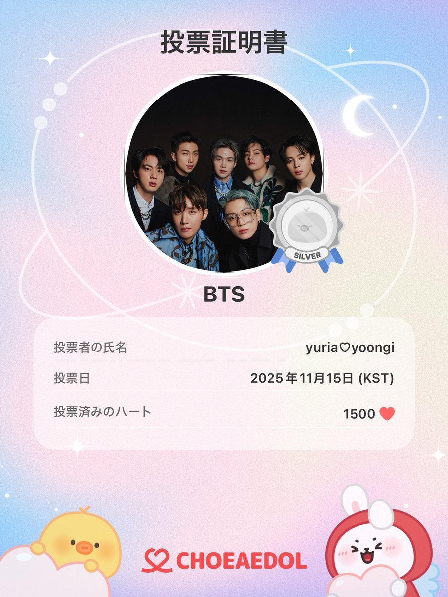 テテちゃん応援🧸💜 本日投票完了しました💝 一緒に最愛ドルしましょう! #最愛ドル #V_BTS #投票証明 myloveidol.com/community/?loc… pic.x.com/Mf03OimWRj