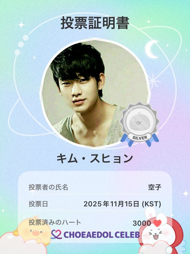 本日投票完了しました💝 一緒に最愛ドルスターしましょう! #最愛ドルスター #キム・スヒョン #投票証明 myloveactor.com/community/?loc… pic.x.com/7qbHANzgoT