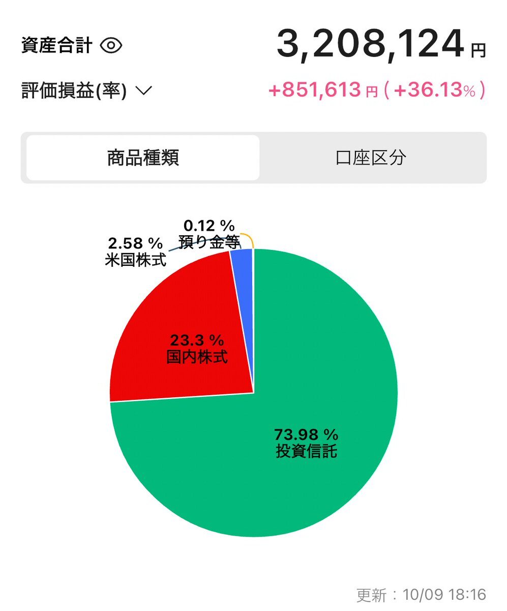 2025.10.9(木) 収入:0 支出:4000 収支:-4000 本日の含み益(損):+65,000 SBIが連日高騰しており恩恵を受けております😭 月々の積み立て分もあり、ついに株式だけで1000万の大台に乗りました👏 始めた時は数千円でビビってた自分が懐かしいです #収支報告 #投資初心者さんと繋がりたい