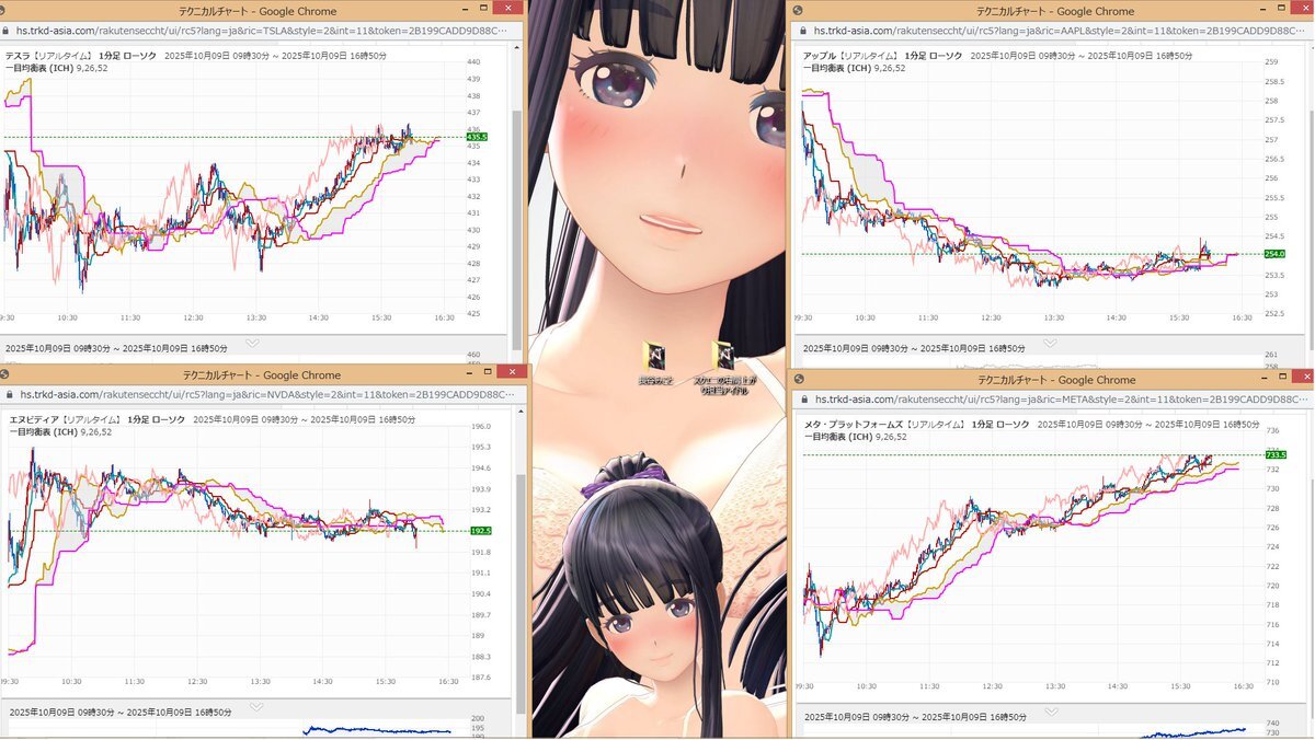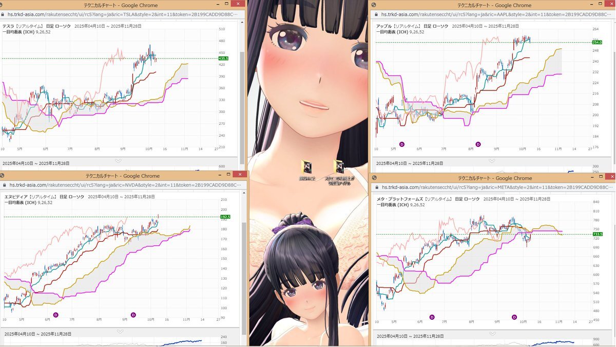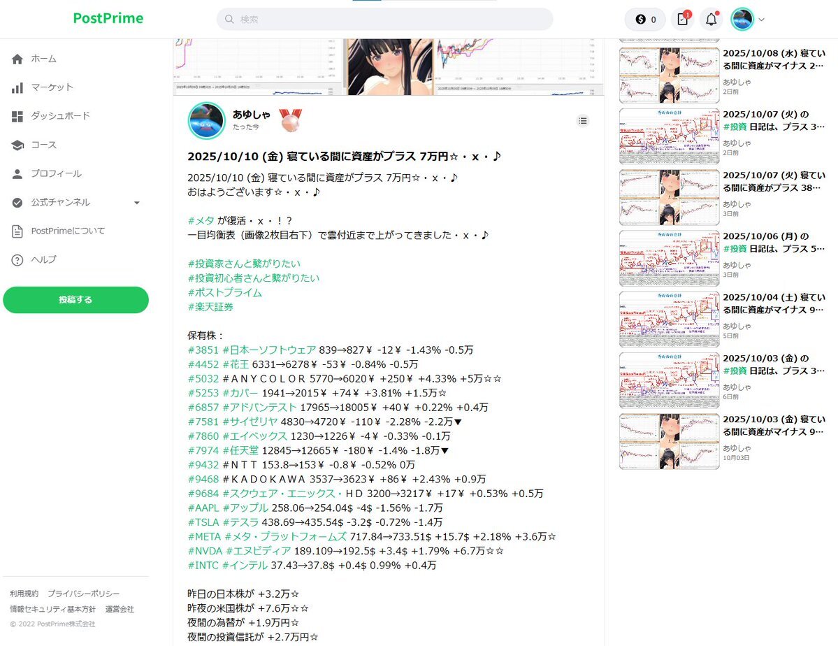 2025/10/10 (金) 寝ている間に資産がプラス 7万円☆・x・♪ おはようございます☆・x・♪ #メタ が復活・x・!? 一目均衡表(画像2枚目右下)で雲付近まで上がってきました・x・♪ #投資家さんと繋がりたい #投資初心者さんと繋がりたい #ポストプライム #楽天証券 pic.x.com/sKjv7wz0At