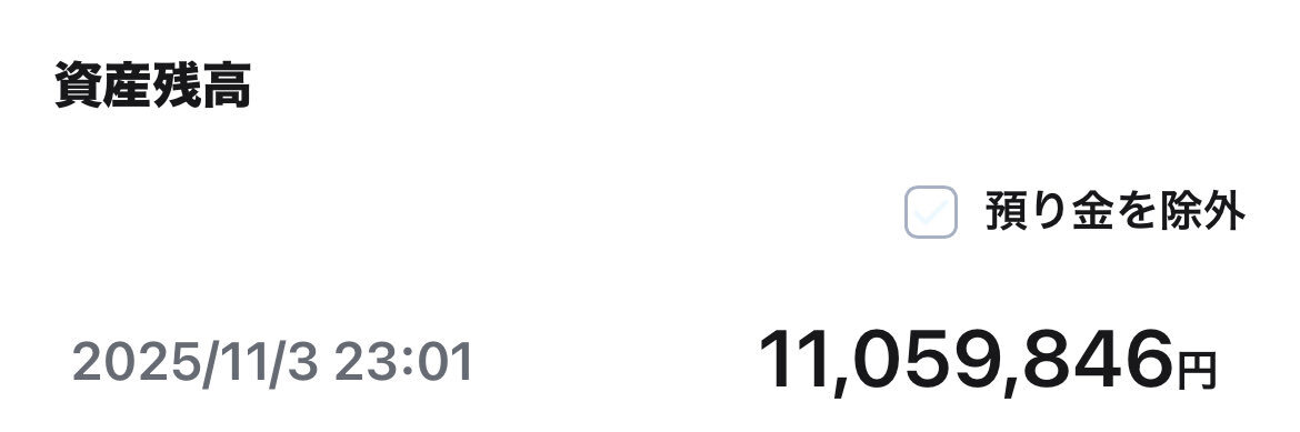 定点観測💰 11/8 ¥10,999,097 前週と比較して、△210,157 泣きそう😭 #投資垢 #投資家さんとつながりたい