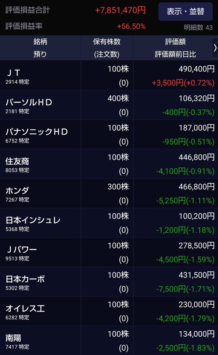 今日のS株 ・KDDI 1株 ・積水ハウス 1株 ・西鉄 1株 ・フジマック 1株 ・日清食品HD 1株 ・野村不動産 1株 ・東急不動産 1株 ・キッコーマン 1株 ・双日 1株 ・日本タングステン 1株 ・モリタHD 1株 ・九州電力 1株 #投資家さんとつながりたい #高配当株 #公務員