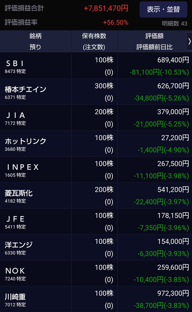下げ相場でのデイトレはやる事が本当にありません こういう時に「買い」でしか勝負ができないよりも、「売り」という武器があると強いんだろうなと身をもって感じました👍 良い勉強の1日でした👍 ちなみに無駄に勝負しようと手を出した銘柄はズタボロで大きく負けました😭 #投資家さんとつながりたい