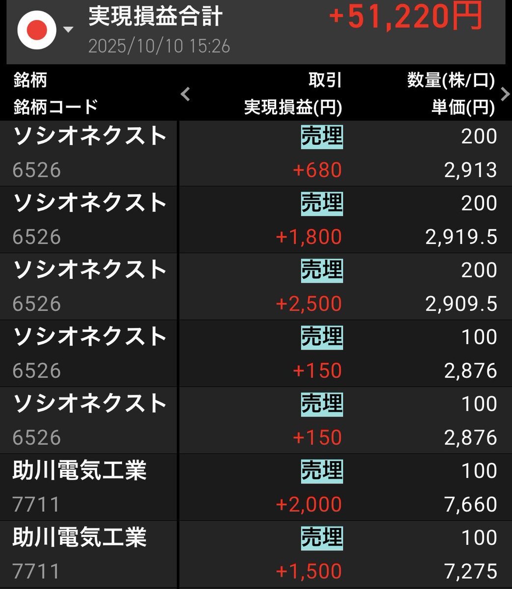 今日は昨日仕込んでた吉野家が、決算後上げてくれて、成売り。あとはソシオネクストや、助川で利確。今日は相場が下がり、思うように取れない一日でした。 #投資家さんとつながりたい #デイトレ #本日の成績 pic.x.com/GO1o8Exbg4