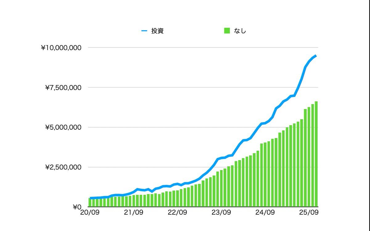 投資結果 5年3ヶ月(63ヶ月) 投資をしてない状態と投資をした結果 2020年9月1日〜2025年11月1日 5年3ヶ月(63ヶ月) #投資 #投資結果 #株式投資 pic.x.com/p0t51VjZy1