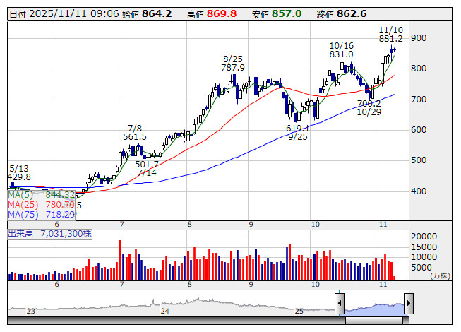 251111(火) #投資記録 トピ△0.13% 3,321P 日経▼0.14% 50,842円 グロ▼0.42% 709P PF▼0.65%(51,550円) 半導体株↓ 鹿島/大成ともに上方修正・増配→急伸 PF