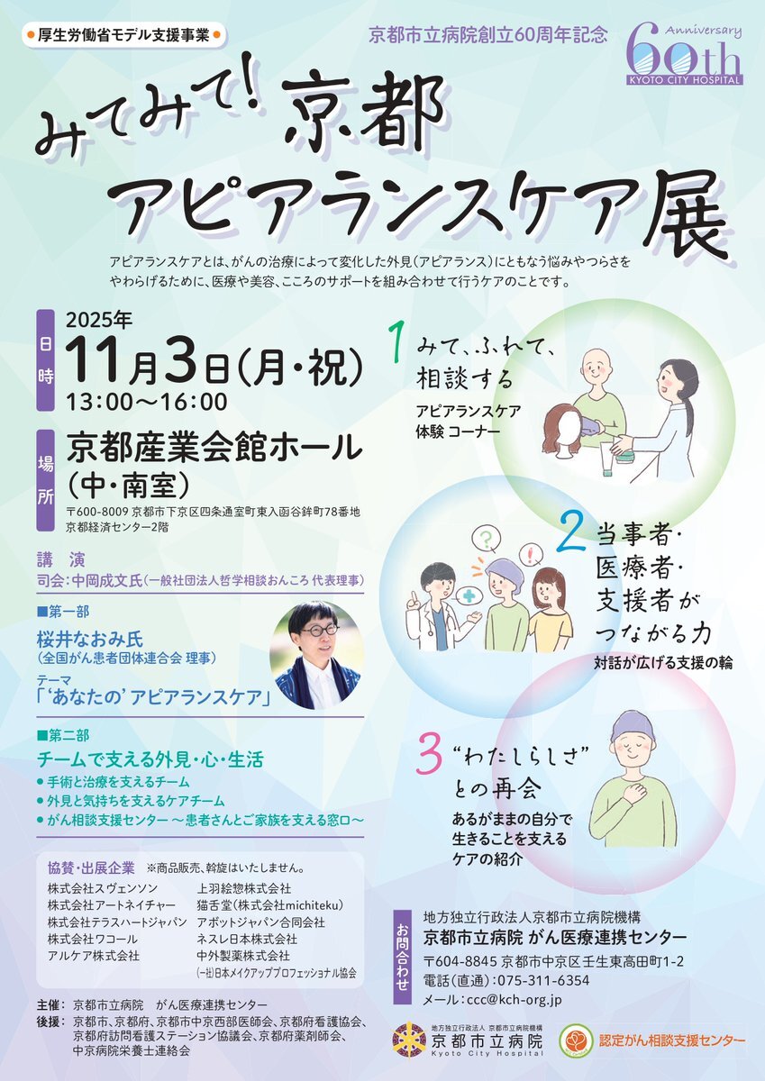 京都市立病院 様より 「みてみて!京都アピアランスケア展」 日時:11/3(月)13:00-16:00 会場:京都 対象:どなたでも 詳細:x.gd/Znzps #抗がん剤副作用 #アピアランスケア #外見ケア pic.x.com/AcyuTIk0RY