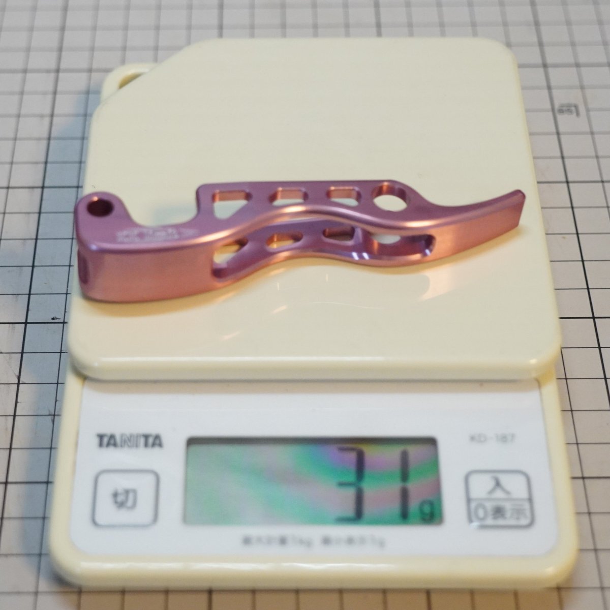 折りたたみ自転車ラッチ部分🌸挿し色🌸穴ボコボコ軽量化CNC加工、角と端面もちゃんと研磨されてて比較的マトモな品物ですが、このままではポン付け出来ません。0.015mmくらいヤスって8.8mmの穴を拡張します。アルミは柔らかくて怖いので手作業でヤスります。#ミニベロ