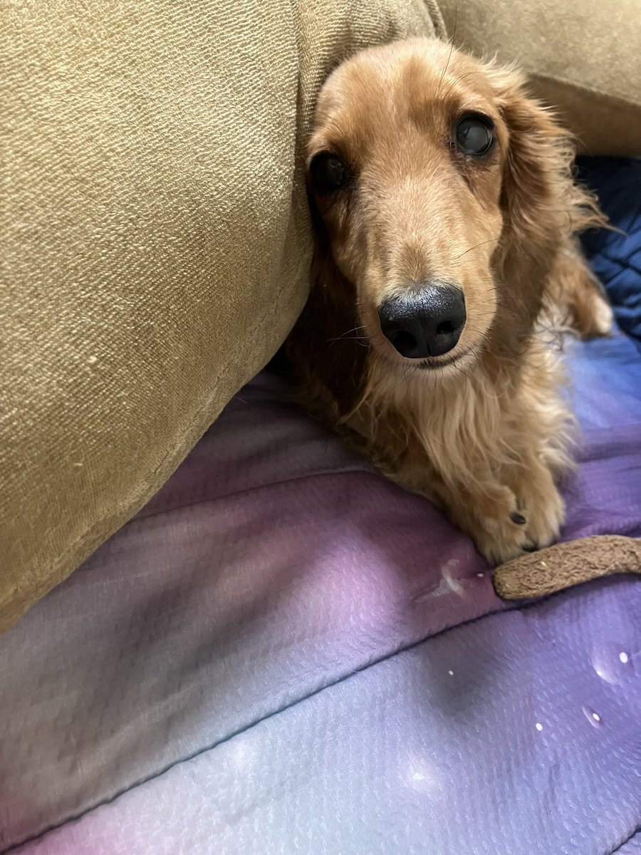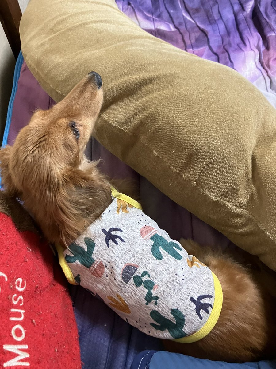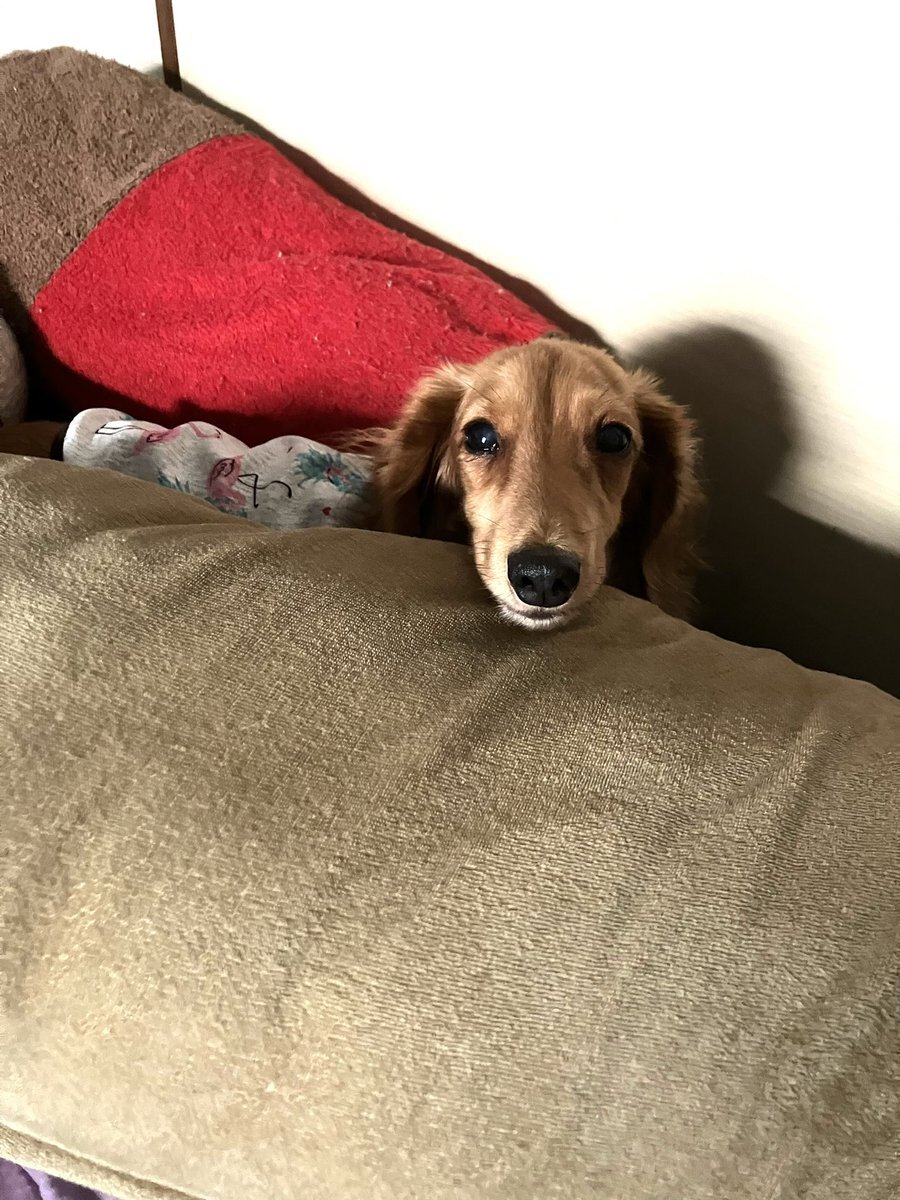 今朝のシェリー 「シェリー、おはよー」 シェリー、太さが抱き枕の半分🤭 体重、3.8キロ #ミニチュアダックス #犬好きさんと繋がりたい #犬のいる暮らし #抱き枕 pic.x.com/h4DWVnDZUf