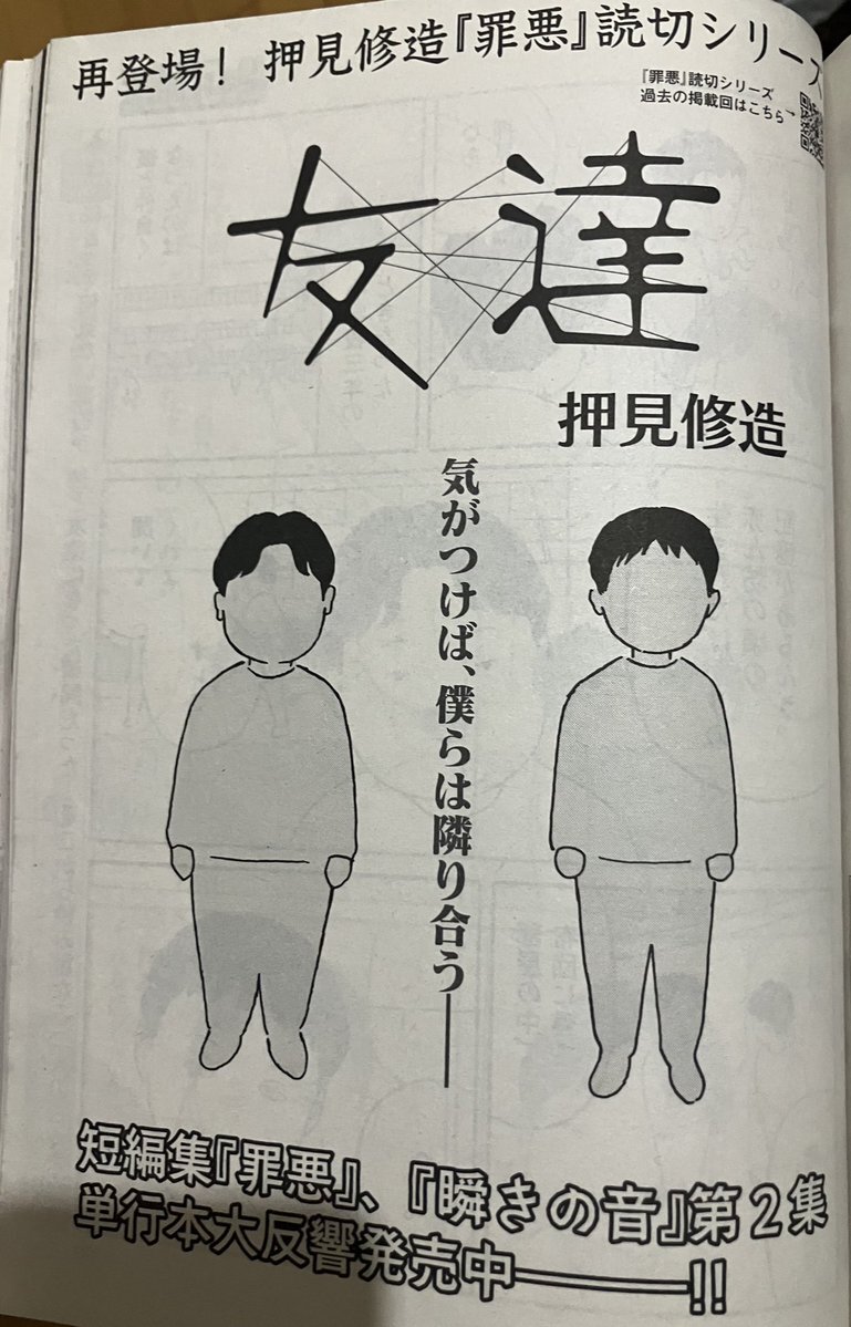 【本日発売】 『罪悪 押見修造短編集』 自身の”罪の原風景”を描いた回想録4編を収録。 押見修造 初の短編集!! #ビッコミ で、第1話を試し読み bigcomics.jp/episodes/69c9c… #押見修造(@shuzo_oshimi) pic.x.com/3Nq5hJchiV