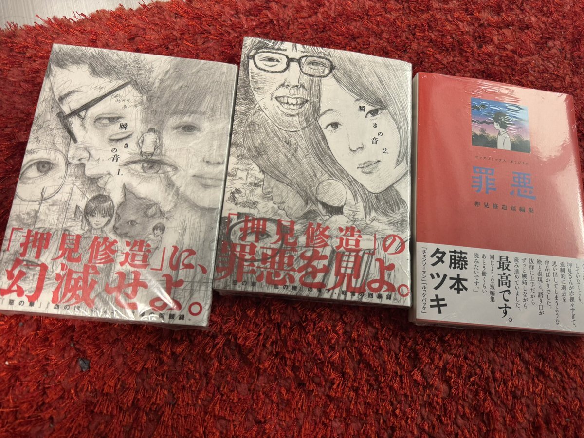 本屋さんで押見修造先生の未読の作品が3冊もありました!😨 やっぱり情報量多すぎて本当に欲しい情報見逃してるな〜💦 『瞬きの音』の方は1巻無くて別の本屋さんまで探しに行きました💦 とりあえずめっちゃ楽しみ〜✨ #押見修造 pic.x.com/9jvgTgvWHg