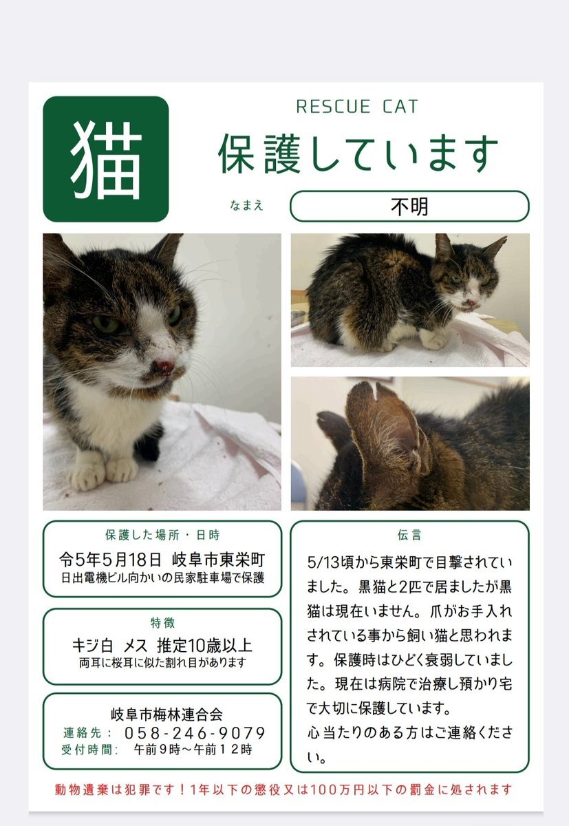 岐阜市東栄町付近 迷子猫ちゃん保護されてます 見覚えのある方いらっしゃいませんか? #拡散リポスト御協力をお願い致します #迷子猫 #保護されてます #お家に帰れますように #動物遺棄・虐待は犯罪 #迷子猫 #保護猫 #この子どこの子 pic.x.com/CyGgSS9nib