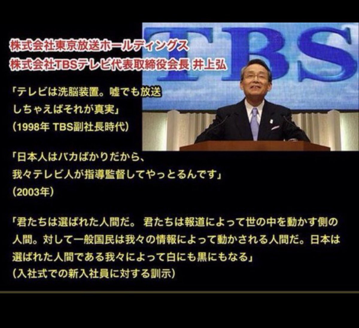 TBSの 看板番組 CDTVをご覧の皆さん こんばんは 同社の 元社長 井上氏本人の発言です どう思いますか? 我々日本国民は 完全にテレビ局=マスメディアに 馬鹿にされている 現実を認識しましょう! #拡散リポスト御協力をお願い致します #TBS #CDTVライブライブ pic.x.com/QIN3eCNfGj x.com/tbs_pr/status/…