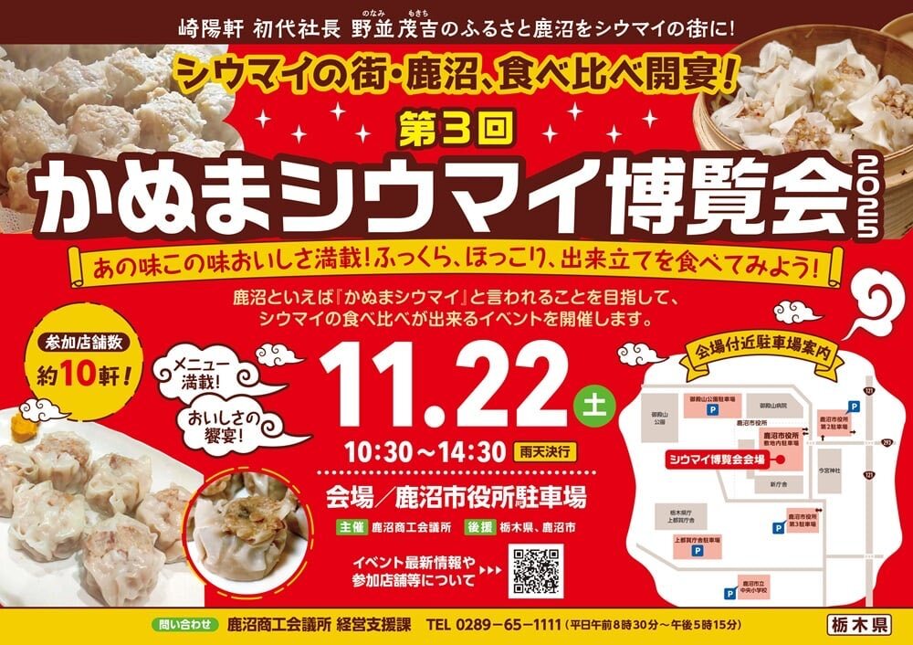 いい夫婦の日は 第3回かぬまシウマイ博覧会 2025 11/22(土) 10:30~14:30【雨天決行】 会場:鹿沼市役所駐車場 #シウマイ博覧会 #拡散希望します #かぬまシウマイ博覧会2025 #鹿沼 #栃木県 #かぬまシウマイ pic.x.com/QUnJfnirmO
