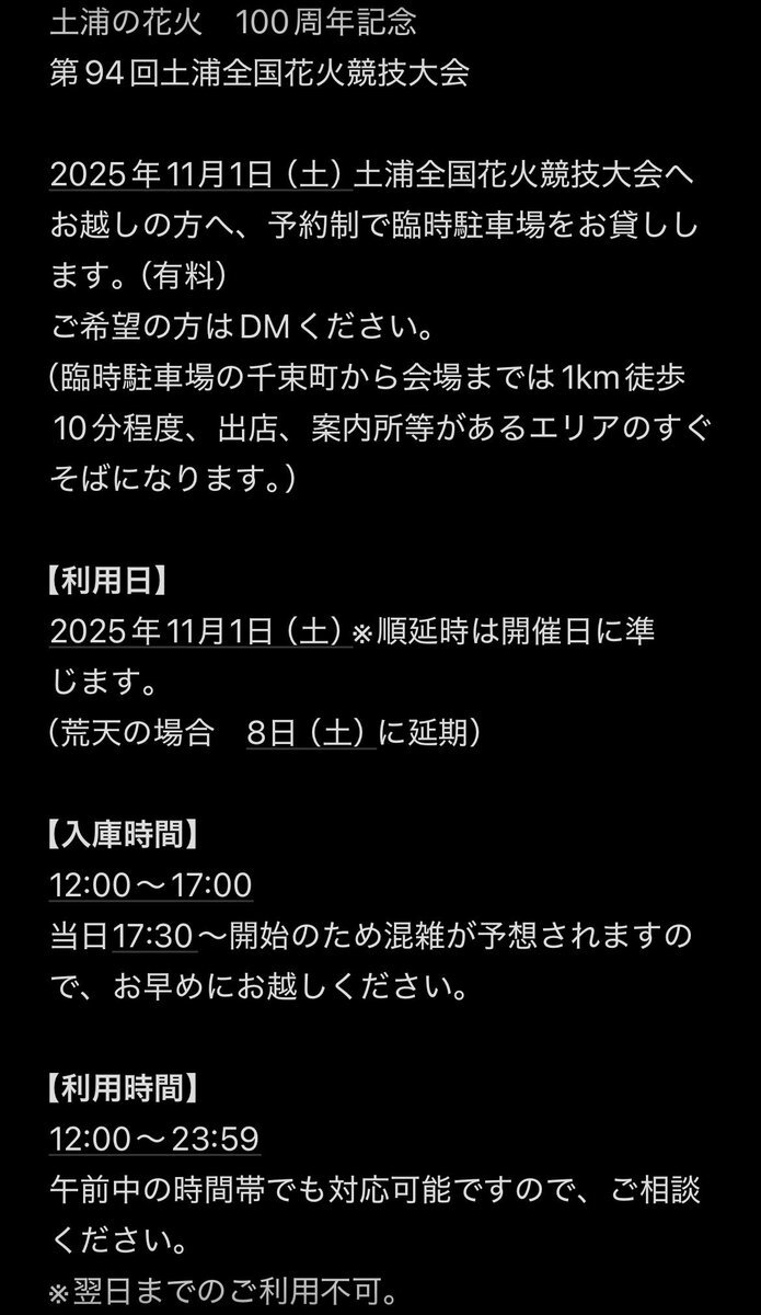 土浦の花火大会 貸し駐車場まだまだ空きがあります! 駐車場をお探しの方、ご検討ください。 #茨城県 #土浦市 #駐車場 #花火 #土浦花火 #土浦の花火 #土浦の花火100周年記念 #土浦全国花火競技大会 #第94回土浦全国花火競技大会 #拡散希望RTご協力お願い致します x.com/spy_air_krty/s…