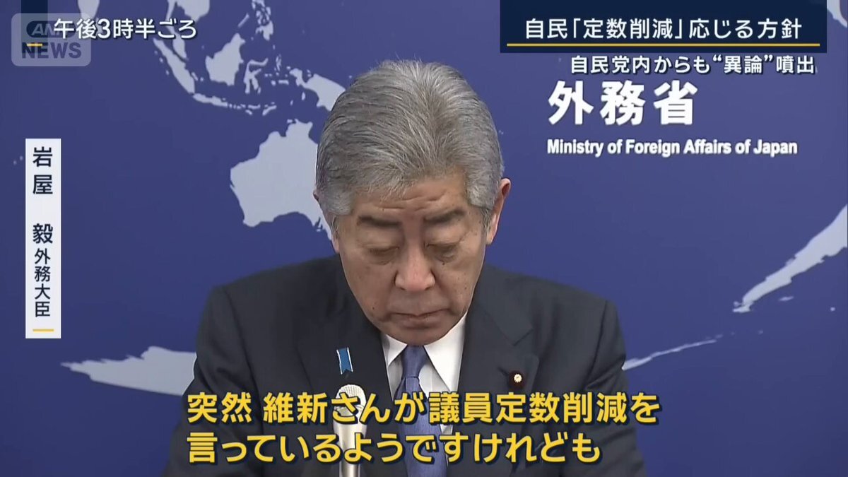 早く高市内閣が発足して岩屋毅が外務大臣じゃなくなりますように🙏 岩屋毅外相、維新に皮肉「維新さんが突然、議員定数削減を言っておられるようだが、彼らの改革の一丁目一番地は企業・団体献金の廃止ではなかったのか。ちょっと違和感がある」