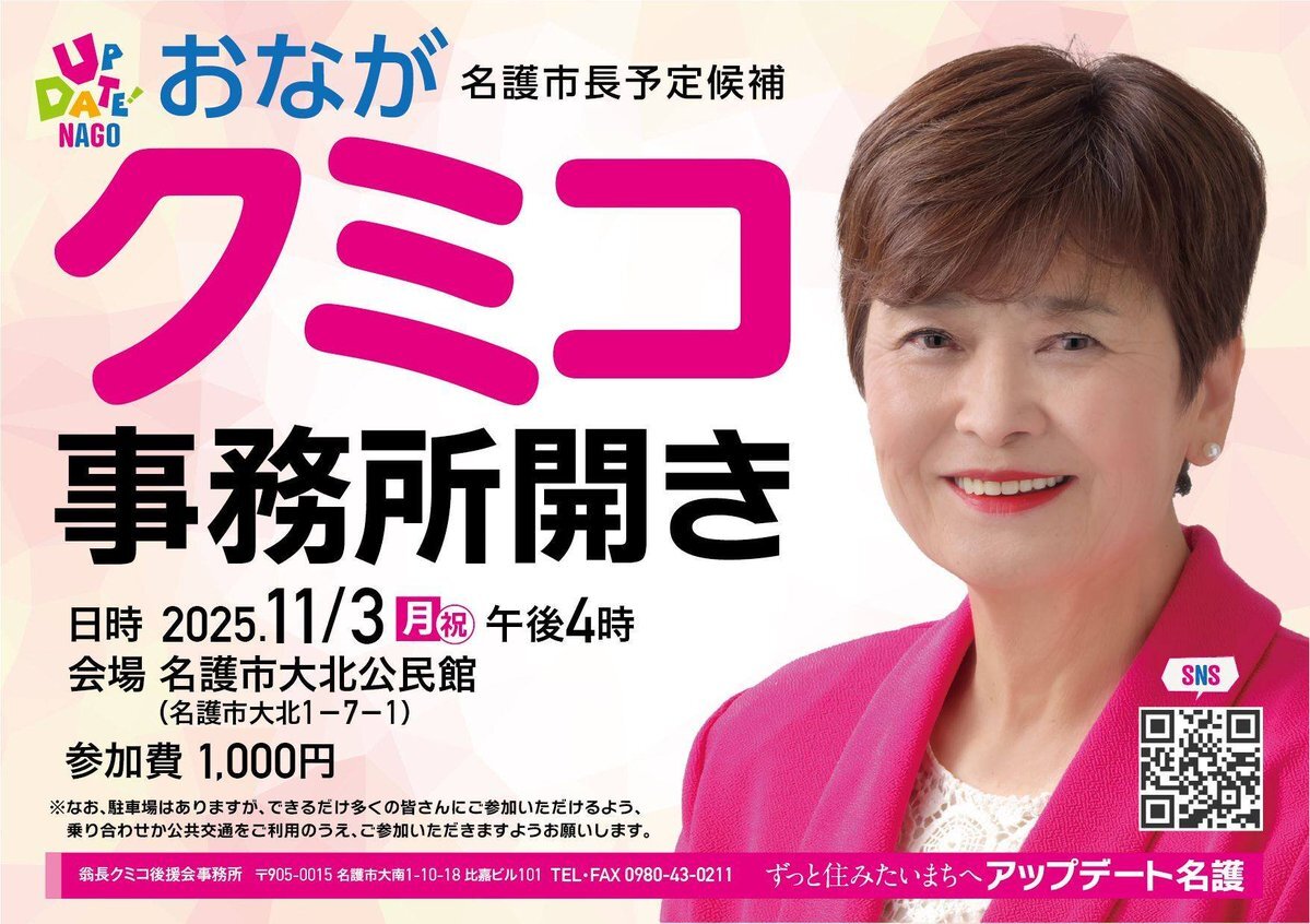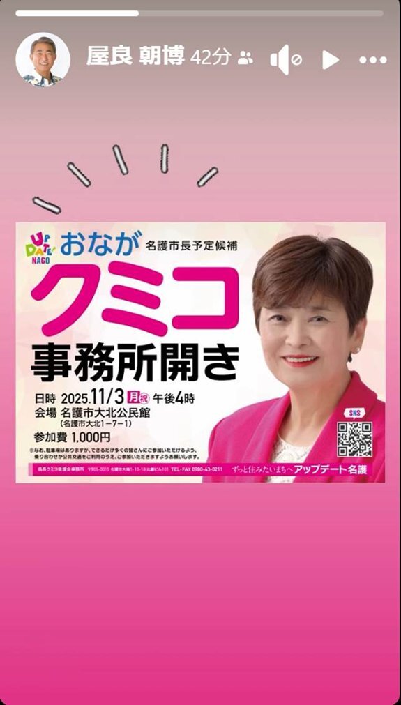 🌺屋良朝博Fbスト-リ-ズ転写 #おながクミコ #事務所開き #11月3日(月)午後4時~ #名護市大北公民館 名護市大北1-7-1 #ずっと住みたいまちへ #アップデート名護 #翁長クミコ #名護市議会議員 #名護市長選2026 #1月25日 #名護市長選予定候補 #女性目線 #市民目線 #皆で広げよう #指ひとつでできる応援 pic.x.com/KcGMGyDe5W