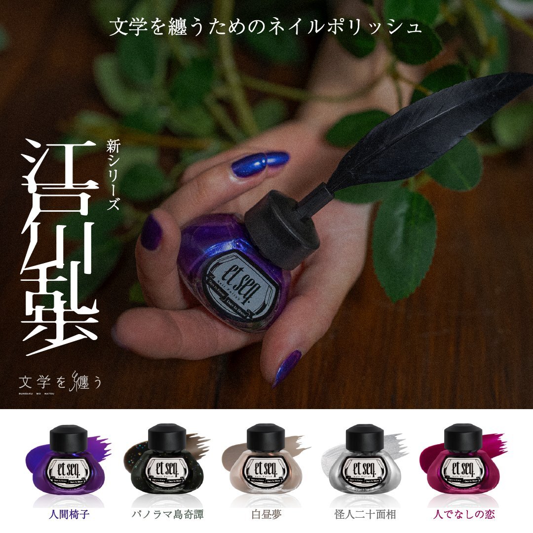 返信先:@etseqnailpolish「この異様なる恋に、身も心もゆだねようか」 狂えば狂うほど、澄んでいく。 『#人間椅子』 『#パノラマ島奇譚』 『#白昼夢』 『#怪人二十面相』 『#人でなしの恋#指先に文学を纏う#江戸川乱歩 シリーズ」はこちらの5作品をもとにしたネイルポリッシュです💅 ぜひのぞいてみてください✨ pic.x.com/hEldWjCvji