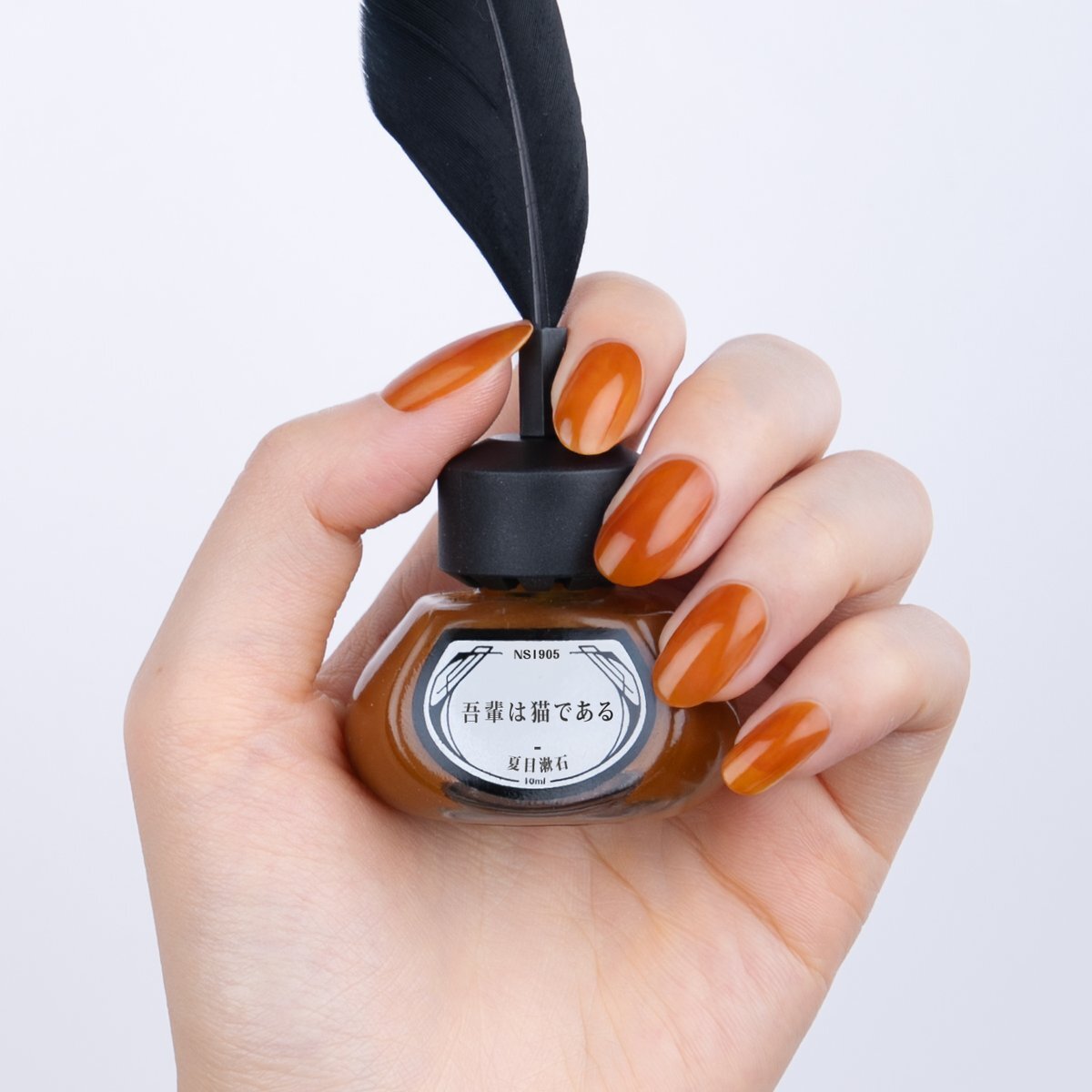 #指先に文学を纏う ネイルポリッシュ #夏目漱石 シリーズ 『#吾輩は猫である』 何にも縛られず闊歩し、世界を映す澄んだ瞳の琥珀色(こはくいろ) 重ね塗りの違いをご紹介💅 透明感のある琥珀色から、重ねるごとにこっくりと深みが増していきます✨ ▼オンラインストアはこちら pic.x.com/hVNVWgDYWV