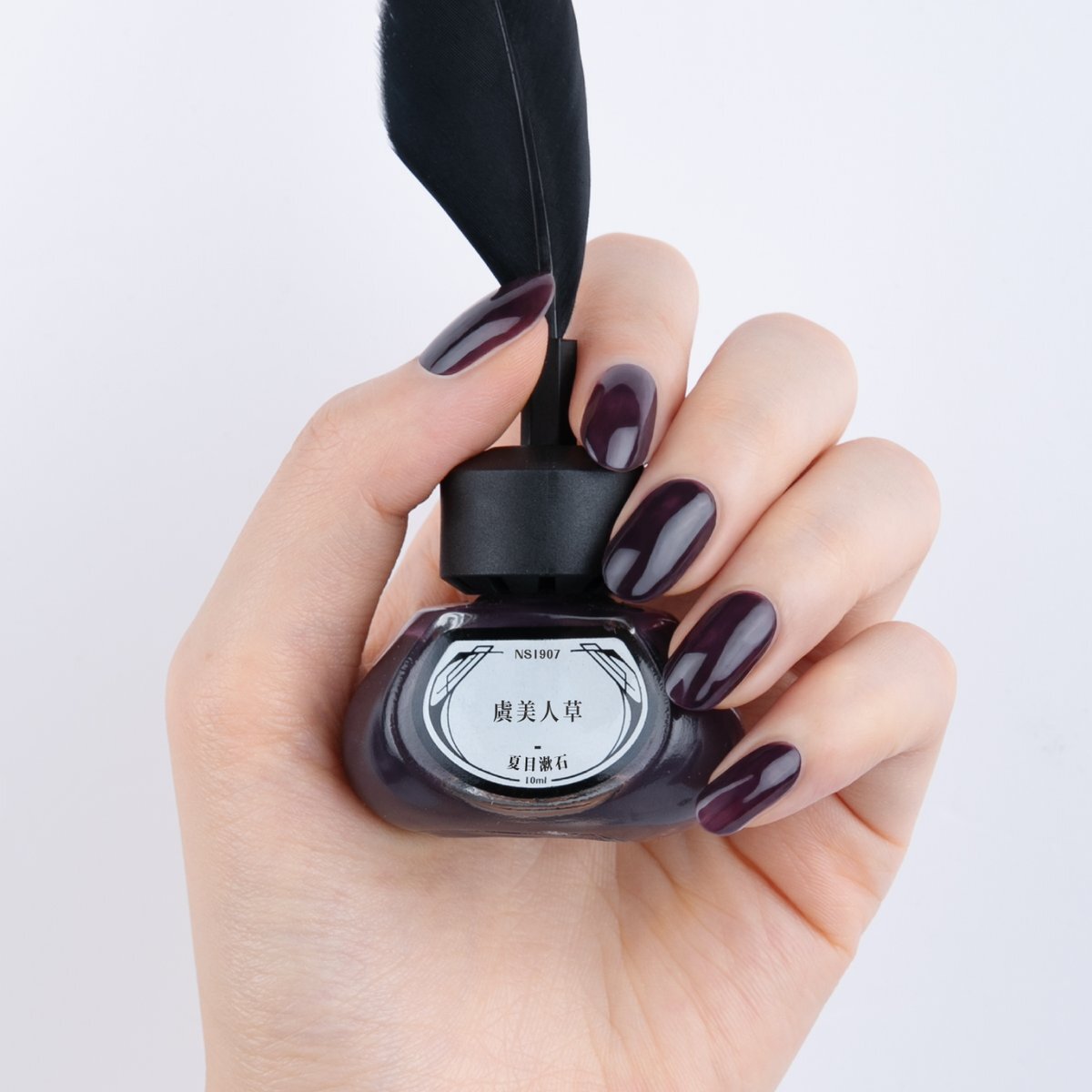 #指先に文学を纏う ネイルポリッシュ #夏目漱石 シリーズ プレゼントキャンペーンにて『#こころ』をお贈りいただきました💅 若干シアー感があり、塗り重ねるごとにぬるい墨色に沈んでいくような感覚があります。色形ともに作品を読み返したくなるデザイン、大切に使わせて頂きます。 pic.x.com/3u880aDLrZ