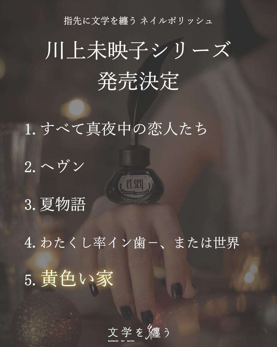 ◤ ̄ ̄ ̄ ̄ ̄ ̄ ̄ ̄ ̄ ̄ ̄ ̄ ̄ ̄  #指先に文学を纏う シリーズ   「#川上未映子」発売決定 _______________◢ et seq.×「#文学を纏う」コラボ新シリーズが12月に発売決定🎉 本日は最後のラインナップをご紹介📚 5.『#黄色い家』 文庫版も発売決定した、2024年本屋大賞候補作。 pic.x.com/Pf7pYnaek8